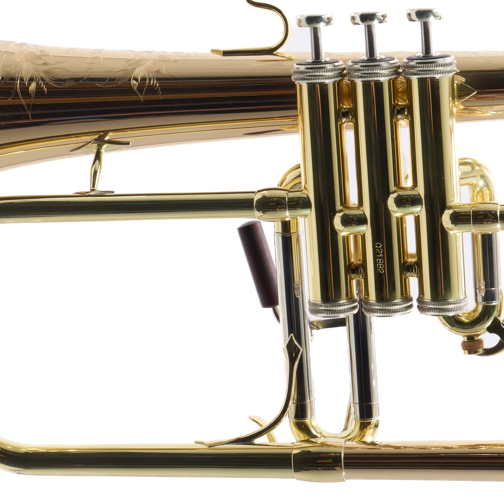 The S.E. Shires Q19G is a professional flugelhorn designed for discerning musicians seeking superior craftsmanship and tonal excellence. This instrument, crafted with a handspun gold brass bell featuring a traditionally brazed seam and soldered bead, offers rich tonal character and enhanced resonance. With its ergonomically designed trigger and smooth valve action, this flugelhorn stands out in performance for its playability and exceptional responsiveness.