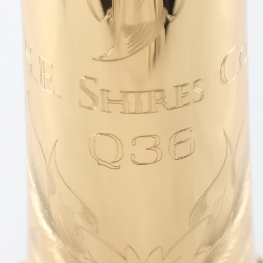A versatile bass trombone, the Q36GA features the clarity of sound and projection for which S.E. Shires instruments are famed. The QYB bell features an 9 1/2-inch, two-piece, hand-hammered “QII” taper in gold brass with soldered bead, giving this trombone a warm, singing tone with excellent projection and clarity with a full, deep low register and broad sound. The wide, .562 bore handslide in standard weight yellow brass results in a broad sound that retains clarity, color and projection. The nickel handslide crook gives crispness and brilliance to the articulations. The independent axial flow valves retain focus throughout all registers and provide an incredibly open valve register. This independent valve system allows fore more flexibility of choice in valve and slide position choices. At home in any ensemble, the Q36YR bass trombone is an excellent choice for any situation.