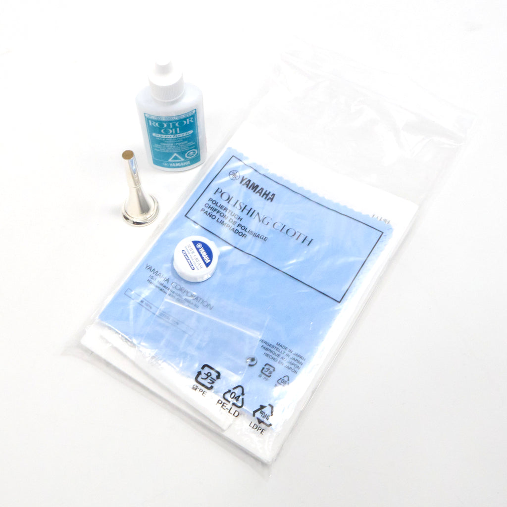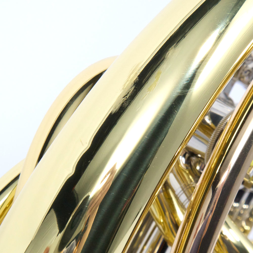 This French horn has only seen minimal use and is in fantastic condition. Freshly serviced in our shop and ready to play. Valves are perfect. Includes original case and all original accessories, including valve oil, polish cloth, and Yamaha 32C4 mouthpiece.