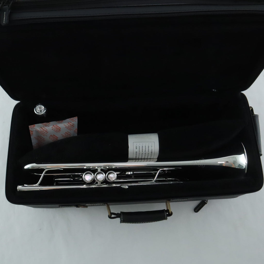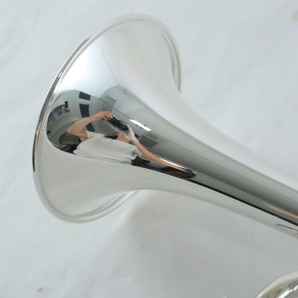 This Yamaha YTR-8335IIS Xeno Trumpet has only seen very little use and is in pristine condition. This trumpet features .459 bore. yellow brass bell, and standard leadpipe. For the first time in 20 years, Yamaha has updated the design of their famous Xeno line of trumpets. This completely redesigned instrument takes the quality and tonal excellence that Yamaha is known for to a completely new level. Many of the design changes reflect the knowledge and innovative concepts learned through the development of the new Artist Model Chicago C trumpet, bringing to the Xeno line enhanced projection and a powerful tonal core. All changes were made as a means to achieve a more responsive trumpet that is easier to play throughout all registers with a richer more complex sound.