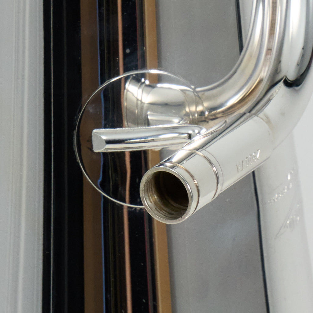 We purchased this instrument directly from the manufacturer and have just serviced it in our shop. It has only seen extremely light use as a demo or display model. In superb condition and ready to play! Includes original case and all original accessories, including valve oil, polish cloth, and 5B mouthpiece.