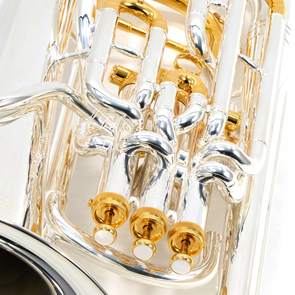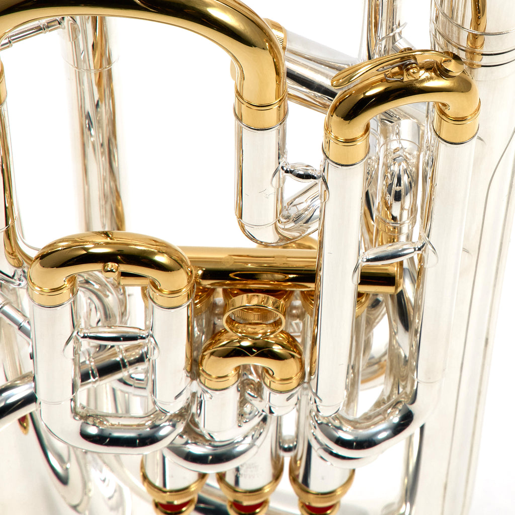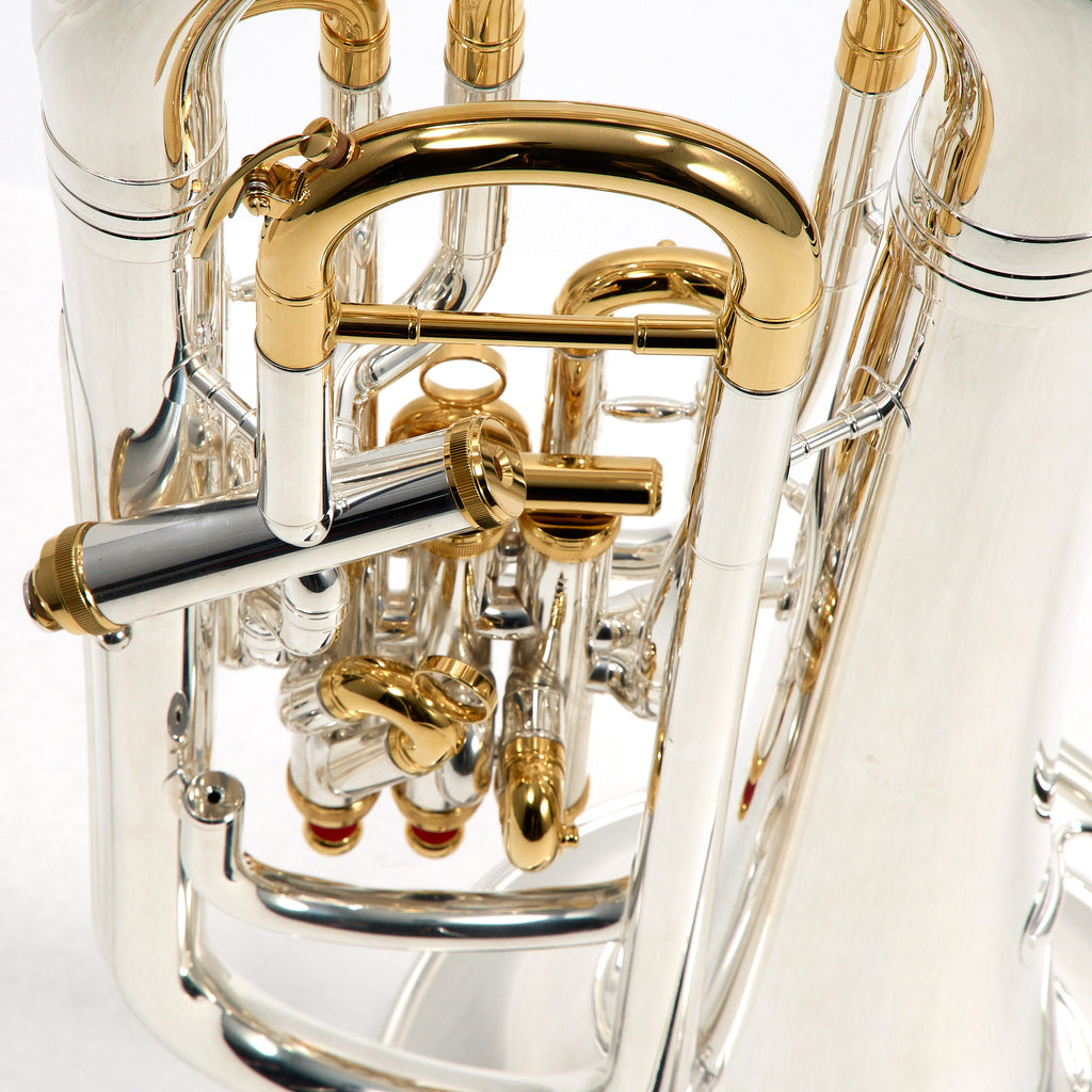 This Yamaha Model YEP-842S Compensating Euphonium has been very lightly used as a demo horn and is in excellent condition. The Yamaha custom euphoniums have fantastic playing characteristics. They have a beautiful, soloistic tone quality, great intonation through all registers, and even response. A very attractive instrument, this horn includes the gold trim kit and looks gorgeous.