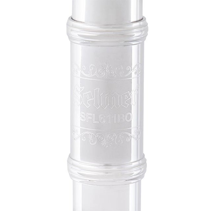 The intermediate SFL611BO, made completely of top-grade American sterling silver, features a professional hand-cut headjoint, hand-assembled keywork, and Pisoni Lucien Deluxe pads. The headjoint design features a sharp blowing edge, steep drop-off lip plate, and multi-tapered bore for fast and effortless response and articulation. The under and over hand-cutting provides a rich, expressive tone that is even throughout all the registers and gives the performer extreme dynamic control. The keywork has the highest specifications and tolerances alongside carefully adjusted and balanced German steel wire springs ensuring a feather-light, lightning-fast, and fluid key action. French pointed key arms connect at the back of the key cup and extend to the center guaranteeing greater strength, stability, even pad wear, and ultimately less overall maintenance. The SFL611BO, made of premium quality American sterling silver, is an expressive instrument full of depth, richness, balance, and variety across the tonal spectrum. Every Selmer flute is professionally set up, play-tested, and optimally adjusted at the Conn-Selmer Woodwind Factory located in Elkhart, Indiana.