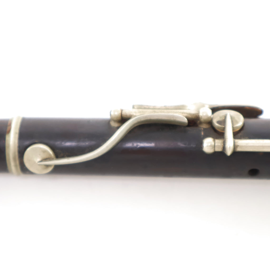The oboe showcases the typical construction style of its time, manufactured of Grenadilla wood, a favored material for its strength and acoustic quality, it features silver-plated keys. A distinctive characteristic of this oboe is the absence of a half hole plate, a design choice reflecting a specific crafting approach that offers insight into the period’s preferred playing techniques.