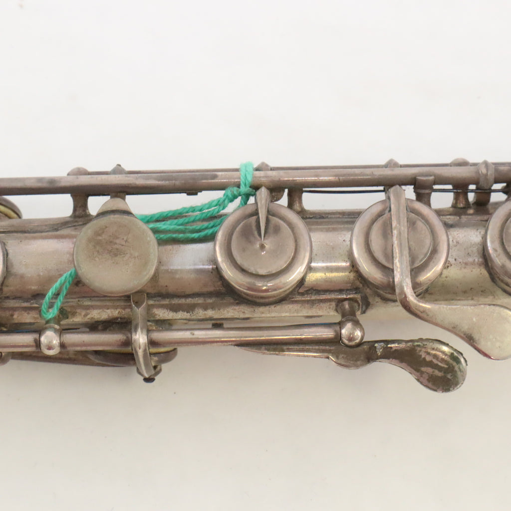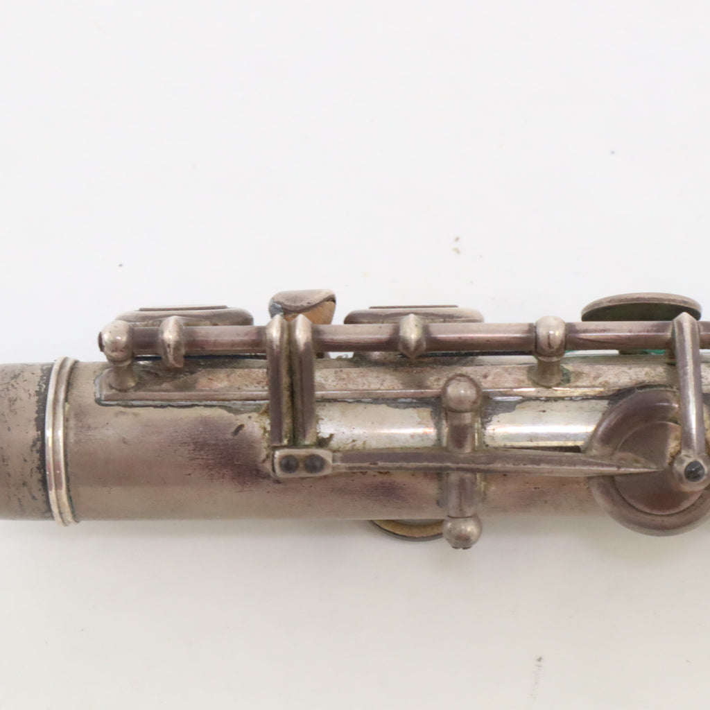 As this instrument is historically interesting, we have chosen to not do restoration work on it and leave that to the eventual owner. Instrument will need pad and keywork to be playable.