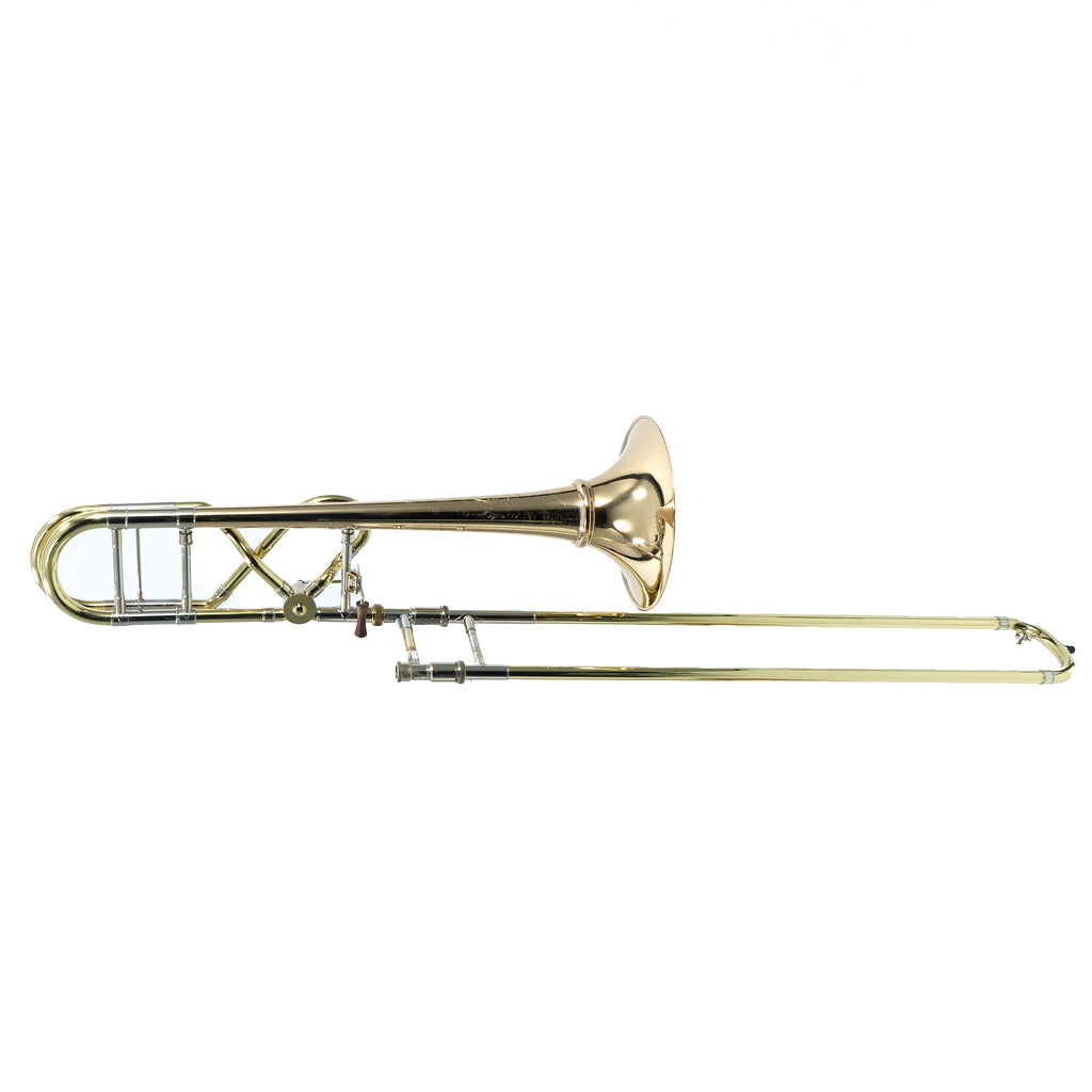 The Peter Steiner signature model, A47XPS features a detachable flare screw bell option with lightweight gold brass bell. Alongside the standard A47X, this developed through extensive research to achieve more balanced resistance and improved air flow throughout the valve section. The result led to the X wrap design, creating a truly even feel in and out of the valve range that extends throughout the most expansive registers. Performers demand an instrument that can be pushed to the limits, the A47XPS delivers that and so much more. New features also include the standard Artisan rotor with a shorter throw and improved transition between notes. Comfort is greatly improved with the elegant and ergonomic design of a contoured rosewood thumb rest. The .547” bore Artisan handslide features a brass cross brace on the inner slide and contoured waterkey, with newly designed threaded leadpipe receiver. This model includes three interchangeable brass leadpipes to allow players more options to fit their individual needs.