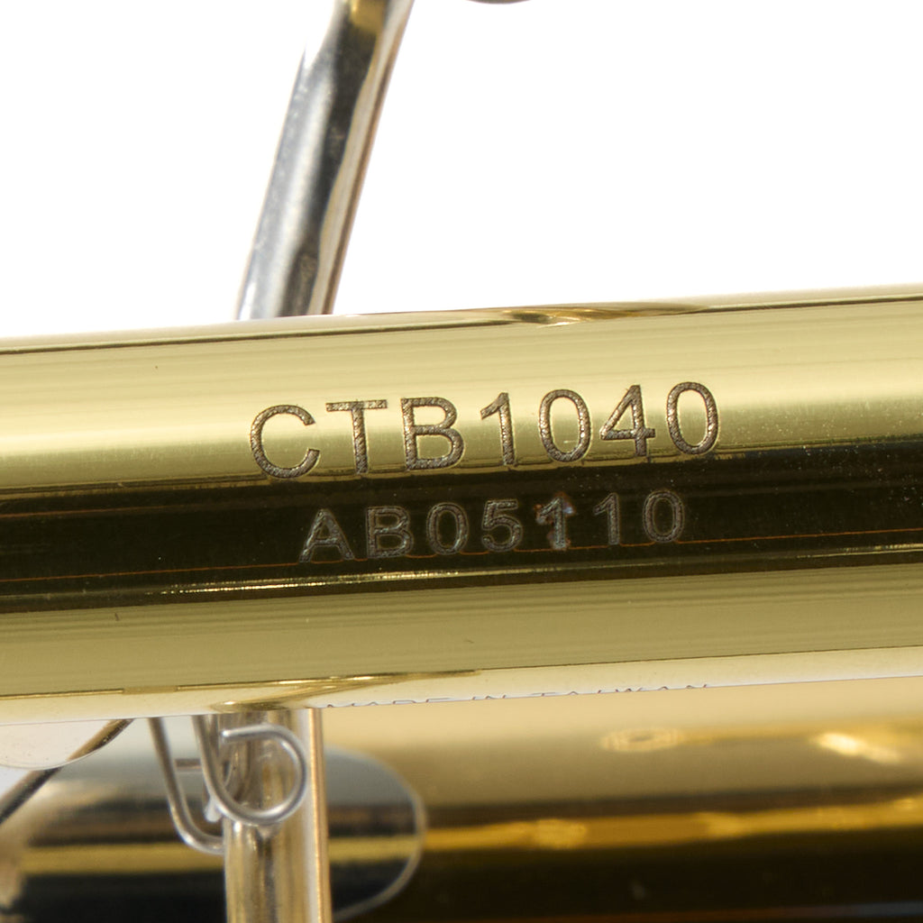 Here's a superb Jupiter CTB1040Q CXL series intermediate trombone with F-attachment. This instrument represents an older model of Jupiter that is no longer being made, but it shares many characteristics with the current model 1236LO. This instrument sports a .547 bore, rose brass bell, and F-attachment; it is an ideal instrument for the budding trombone player's first F-attachment horn.