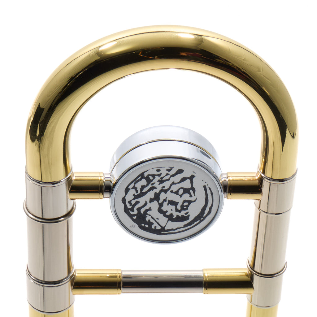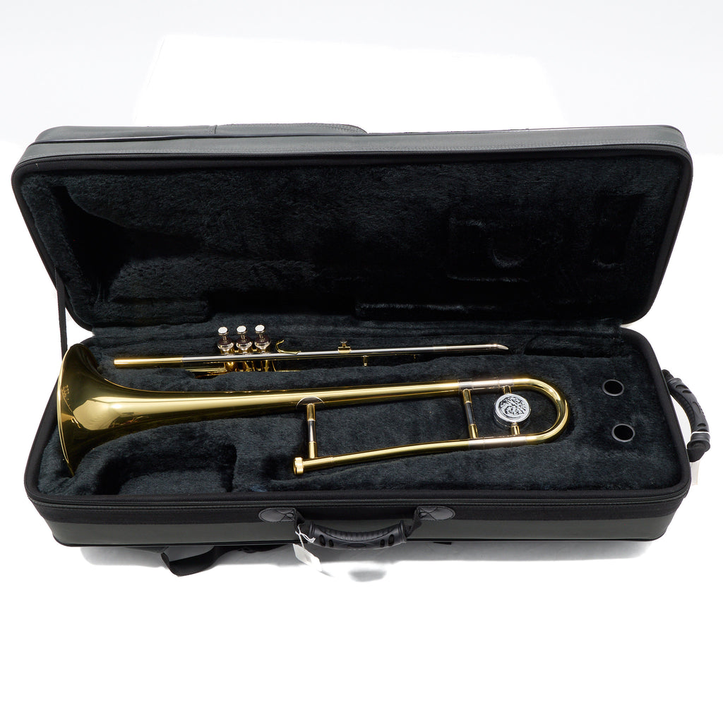 We purchased this instrument directly from the manufacturer and have just serviced it in our shop. It has only seen extremely light use as a demo or display model. There is a minor scar from removal of a small bell dent, but this trombone is in superb condition and ready to play! Comes complete with original case and all original accessories, including polish cloth and small shank 12C mouthpiece.
