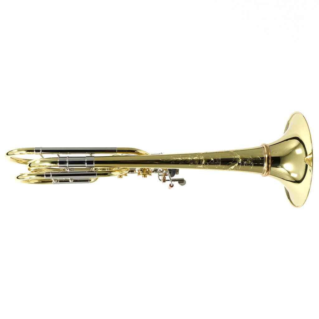 We purchased this instrument directly from the manufacturer and have just serviced it in our shop. It has only seen extremely light use as a demo or display model. In superb condition and ready to play! Comes complete with S.E. Shires bass trombone case, large shank Laskey mouthpiece, and care kit.