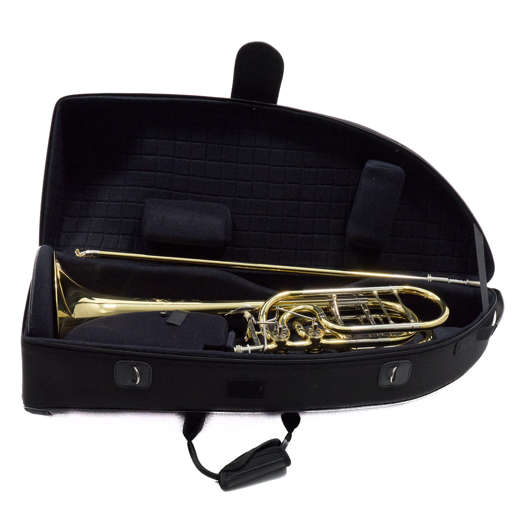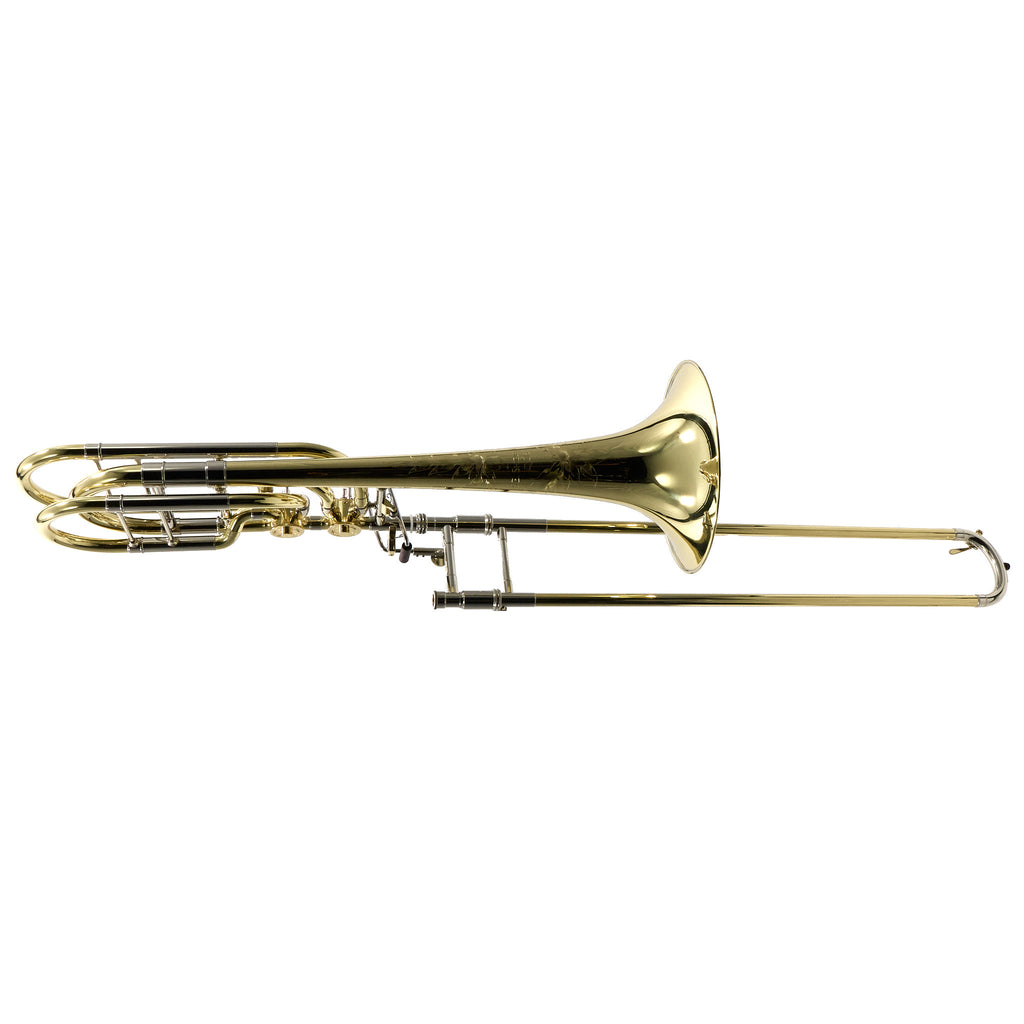 A versatile bass trombone, the Q36YR features the clarity of sound and projection for which S.E. Shires instruments are famed. The QYB bell features an 91/2-inch, two-piece, hand-hammered “QII” taper in yellow brass with soldered bead, giving this trombone a clear, singing tone with excellent projection and clarity with a full, deep low register and broad sound. The wide, .562 bore handslide in standard weight yellow brass results in a broad sound that retains clarity, color and projection. The nickel handslide crook gives crispness and brilliance to the articulations. The independent rotary valves retain focus throughout all registers without sacrificing comfort or clarity in the valve register. This independent valve system allows fore more flexibility of choice in valve and slide position choices. At home in any ensemble, the Q36YR bass trombone is an excellent choice for any situation.