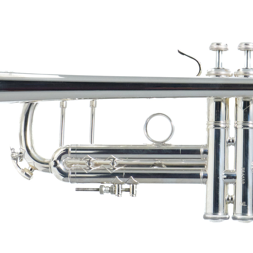 The 180S37 features a #37 one-piece, hand-hammered, professional bell that produces a warm sound with great projection, allowing this instrument to work well in multiple musical settings, from jazz to concert or solo playing. The #25 leadpipe allows for slight resistance that is effective in centering tone production. The silver plate finish provides a subtle brightness to the overall sound while the yellow brass bell enhances depth of tone and brilliance. These features, combined with a .459 medium-large bore, allow the player to produce a well-rounded sound well suited for all types of music.