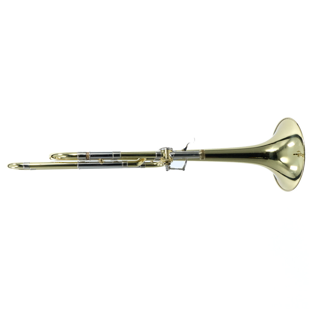 The Bach 42BO trombone features an 8-1/2 inch one-piece hand-hammered yellow brass bell that has defined the symphonic sound for generations. The .547 large bore combined with the traditional wrap F attachment offers outstanding clarity and projection with just the right amount of resistance. The chrome plated nickel silver inner handslide tubes provide the ideal surface for smooth and quick handslide action. The clear lacquer finish adds a subtle warmth to the sound overall. The Bach Stradivarius 42BO professional trombone is ideal for both symphonic and solo performance.
