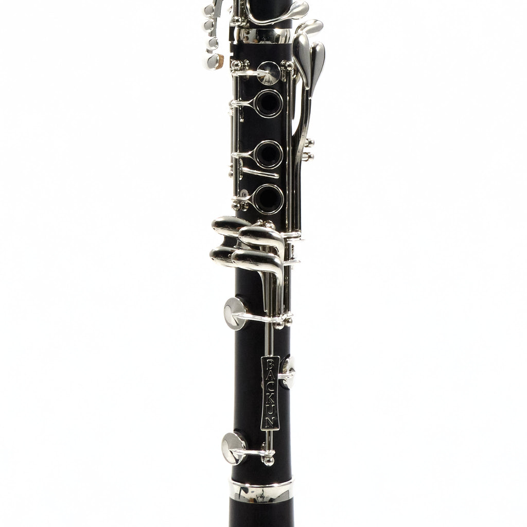 From beginner student to school music rental, the Alpha Plus Wood Clarinet delivers on Backun’s commitment to quality and exceptional value. Featuring unstained grenadilla wood, with a unique barrel and bell design, this model is crafted using advanced machining and finishing techniques that result in a consistent instrument that is playable out-of-the-box. With a comfortable blowing resistance and an ergonomic key work mechanism, moving up to the Alpha Plus Clarinet is a breeze.