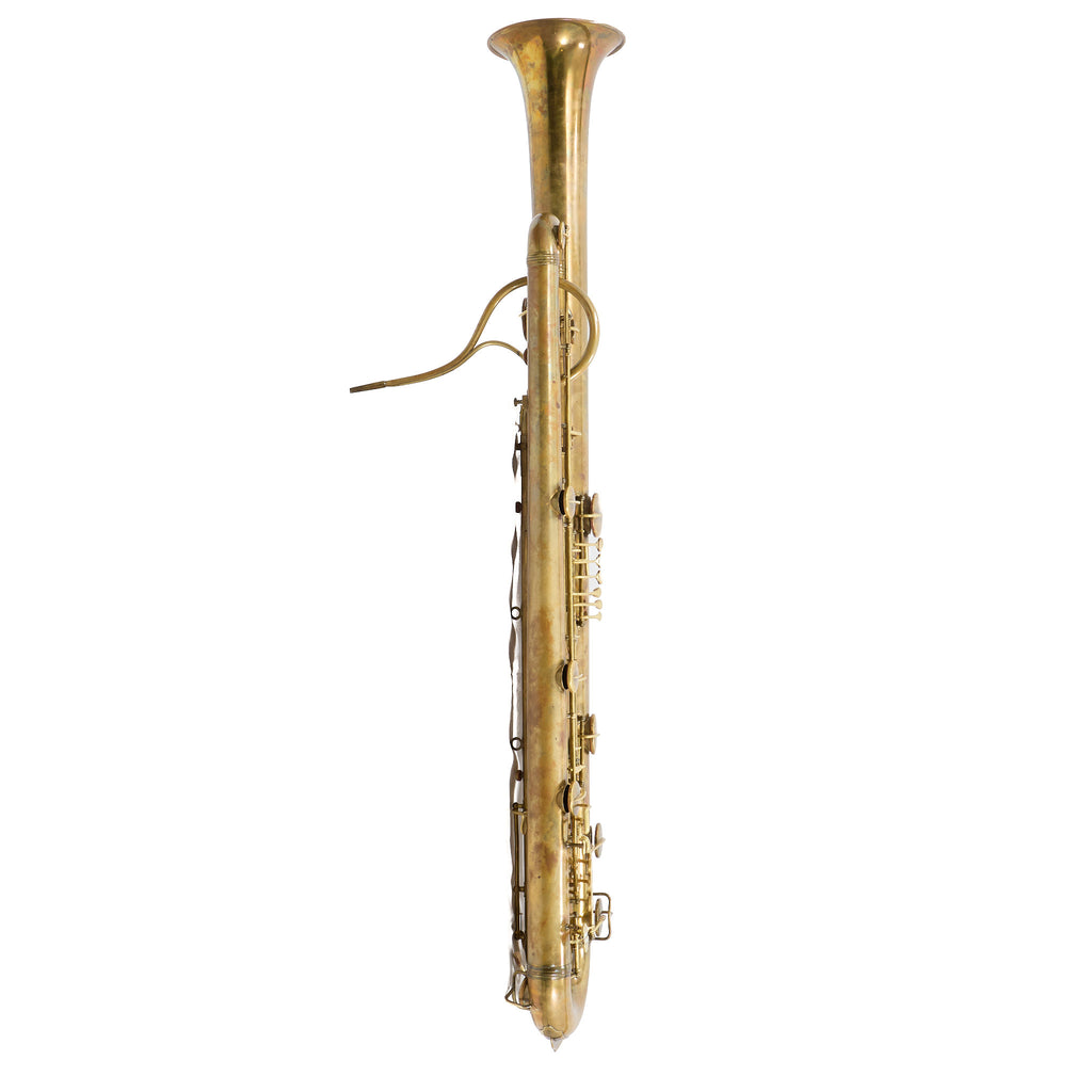 This particular sarrusophone is in excellent condition. This horn has just been completely repadded by CARLO SBISA and is ready to play. There are no dents to speak of. Finish is raw brass; bocal is original. Includes case as well as a Vandoren contrabass sarrusophone double reed. A wonderful opportunity and a rare find.