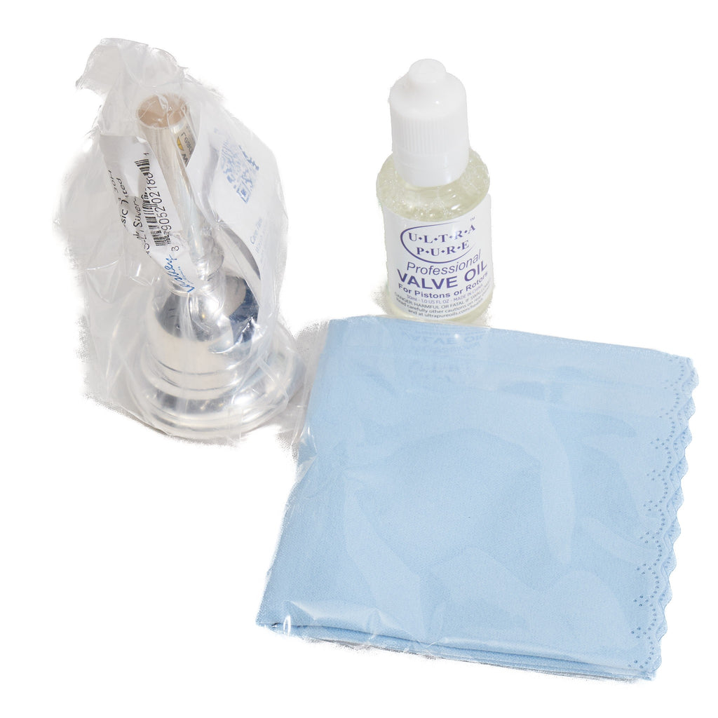 - Accessories: Laskey 28H mouthpiece, valve oil, polish cloth