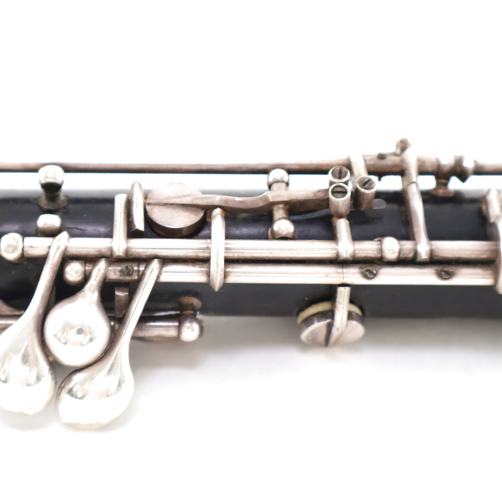 This historic oboe, while structurally intact, shows signs of age typical for a museum-grade artifact. The wood exhibits a naturally aged patina, and the metal components show oxidation in line with its age. It stands as a testament to the ingenuity and skill of its maker, though it is not guaranteed to be playable. Ideal for collectors, researchers, museums, and academic institutions, this Lorée oboe offers a profound glimpse into the evolution of oboe design and construction techniques that have shaped the today's standards. A true collector's piece that bridges musical heritage and historical study.