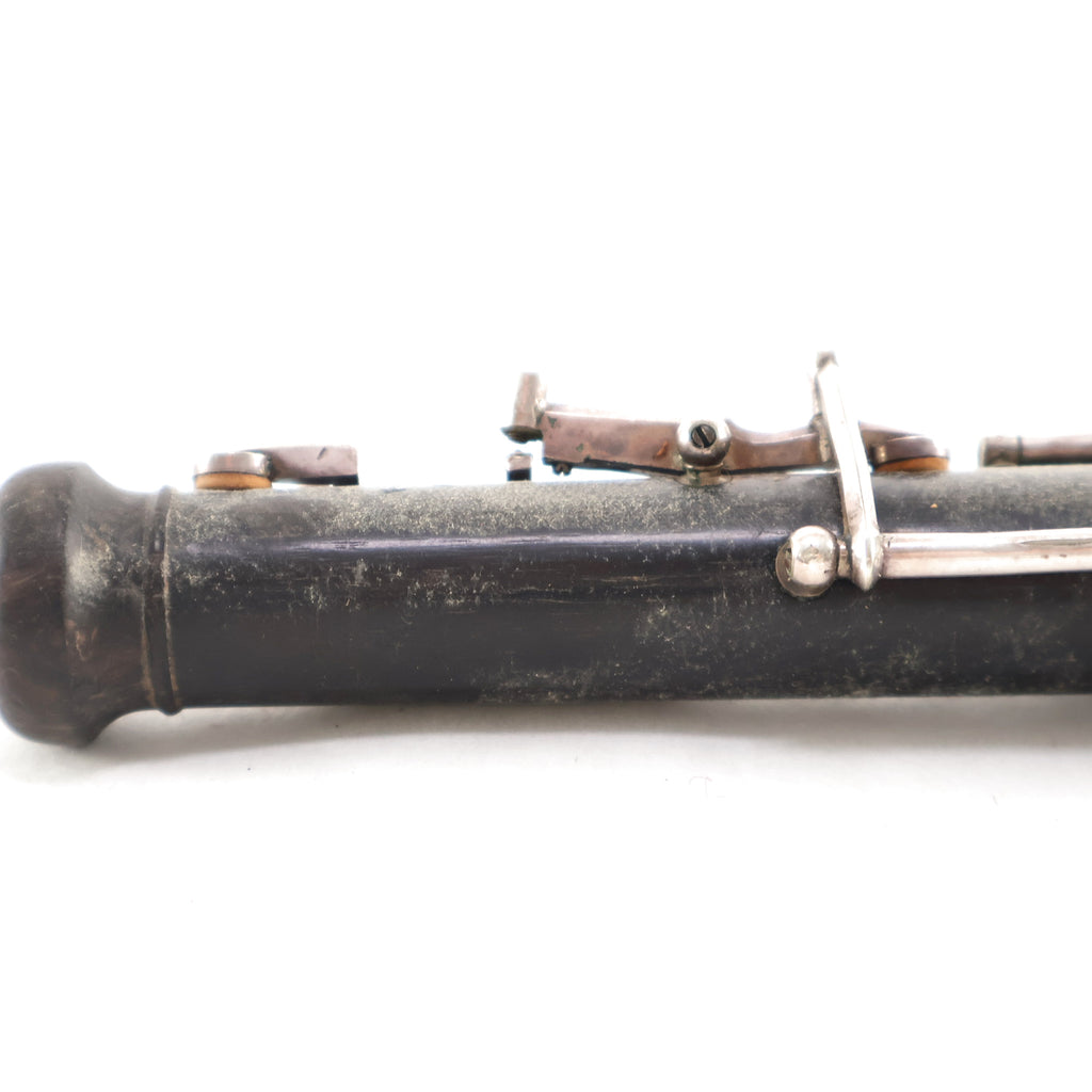 As this instrument is historically interesting, we have chosen to not do restoration work on it and leave that to the eventual owner. Instrument will need pad and keywork to be playable.