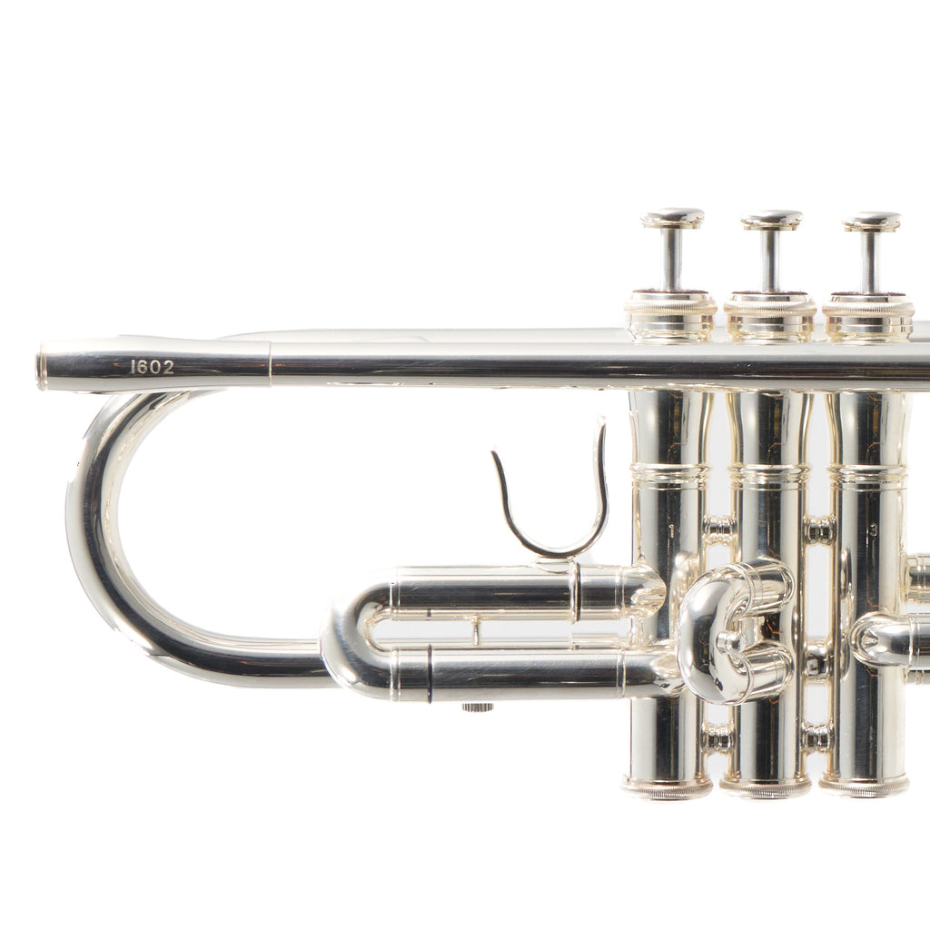 A medium large bore symphonic trumpet, the 1602RS-R plays with a full, rich tone that is perfect for all-around use. This instrument is directly comparable to a Bach 37 or a Yamaha Xeno YTR-8335. This particular model features a rose brass bell that provides a warm, rich tone quality. The reverse leadpipe provides an uninterrupted airflow free-blowing scales and ease of playing. A two piece valve casing and noncorrosive Monel pistons with precisely aligned ports provide smooth noise free action while enhancing the even tone of XO trumpets. Each XO trumpet is built around a traditional two-piece valve casing with nickel silver balusters. By offering a wide selection of bell materials and leadpipe options as well as standard trim package incorporating both round and D-shaped tuning slides, pearl and smooth valve caps and two levels of valve springs, these models can be customized to meet the professional's performance needs.