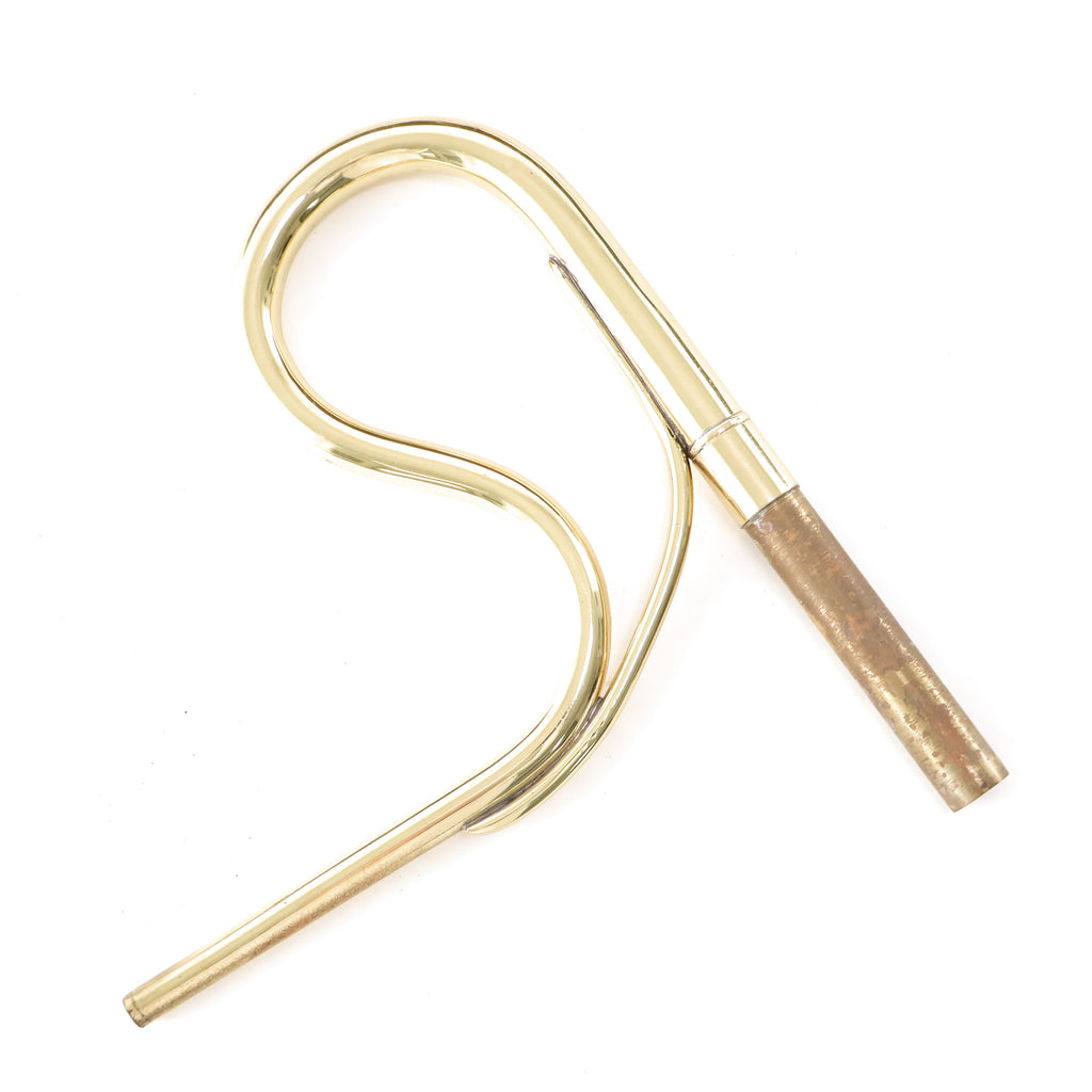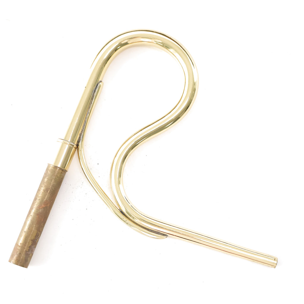 Constructed circa 1870, this contrabass ad anchia is made of yellow brass. Its design is characterized by an unusual key system unique to contrabass ad anchias and similar in idea and scope to that of the ophicleide. The instrument features distinct hand-crafted embellishments and engravings, a signature trait of Orsi’s dedicated craftsmanship.