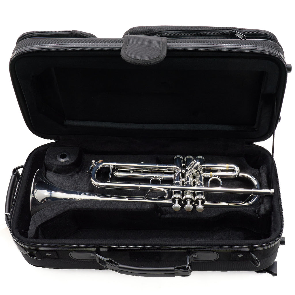 This trumpet has only been used as a demo model instrument and is in perfect condition. It has been professionally serviced, set up, and play-tested to confirm proper valve action, slide fit, and overall playing function.