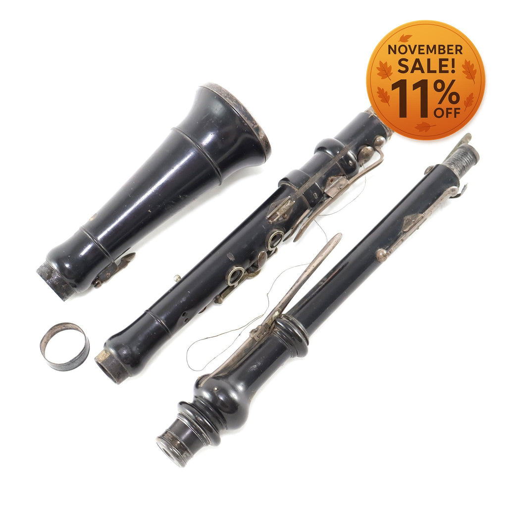 As this instrument is historically interesting, we have chosen to not do restoration work on it and leave that to the eventual owner. Instrument will need pad and keywork to be playable.