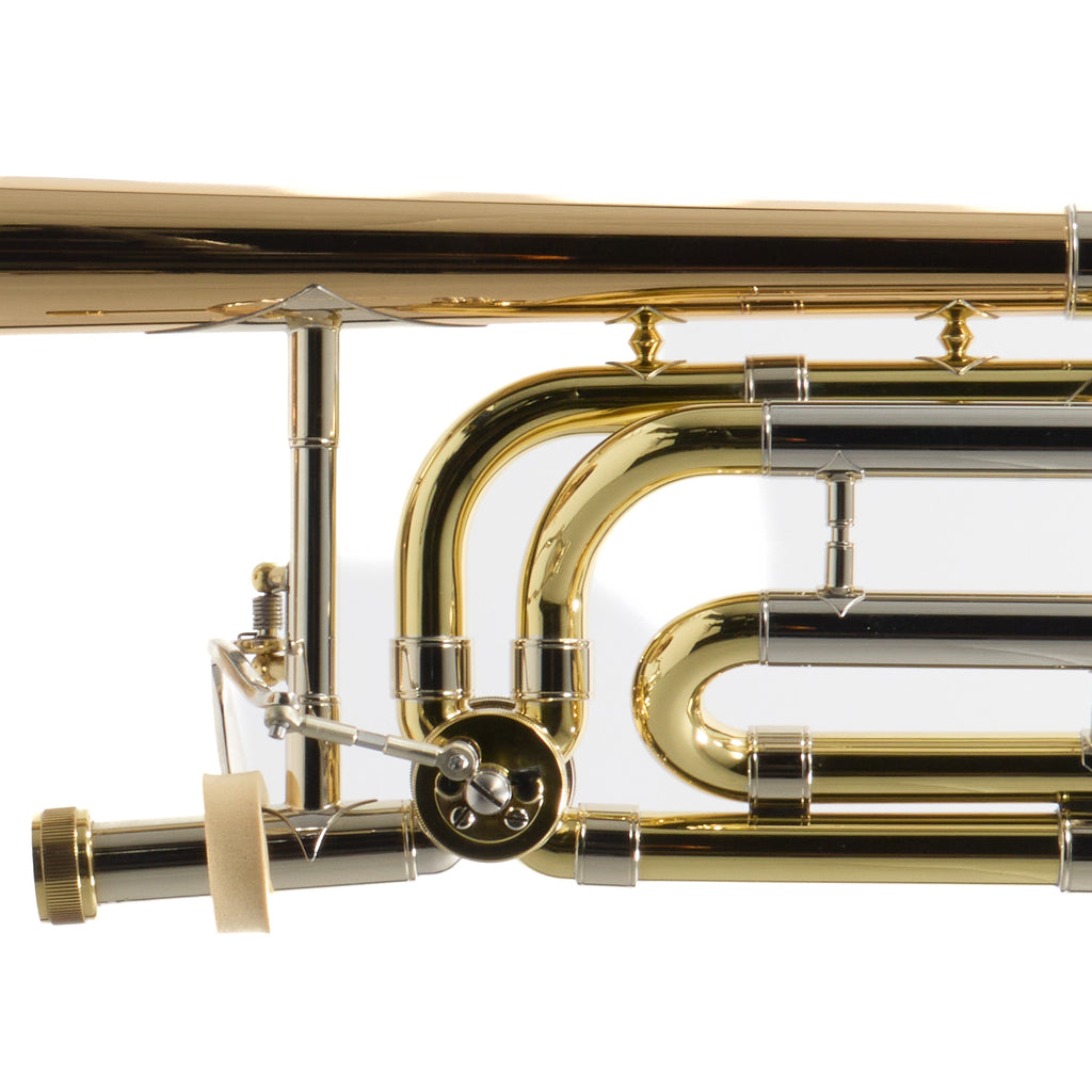 The Bach LT42BG trombone features an 8-1/2 inch one-piece hand-hammered gold brass bell that has defined the symphonic sound for generations. The .547 large bore, combined with the traditional rotary valve and open wrap F attachment, offers a warm sound, great projection, and an open feel. The chrome plated nickel silver inner handslide tubes provide the ideal surface for smooth and quick handslide action and the lightweight nickel silver outer slide lets you rip through those fast passages. The clear lacquer finish adds a subtle warmth to the sound overall. The Bach Stradivarius 42BG professional trombone is ideal for both symphonic and solo performance