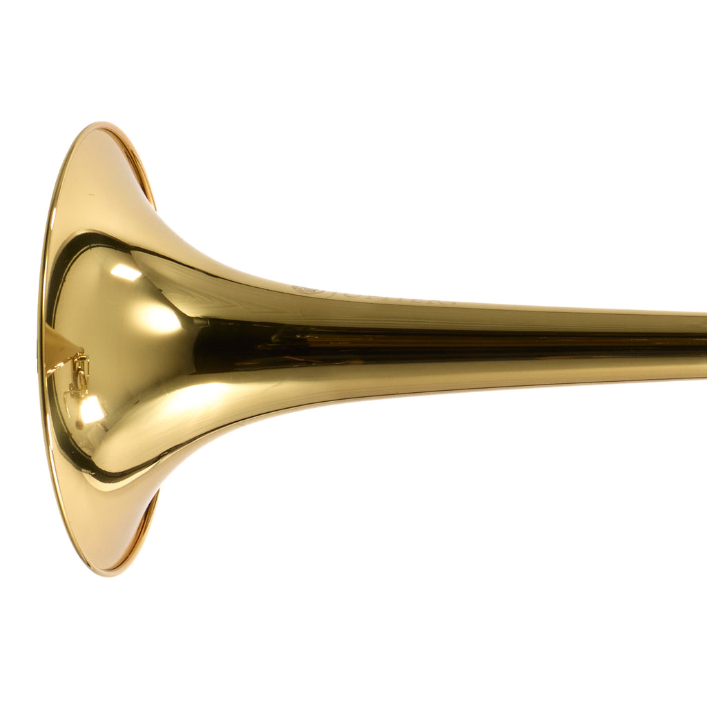 We purchased this instrument directly from the manufacturer and have just serviced it in our shop. It has only seen extremely light use as a demo or display model. In superb condition and ready to play! Comes complete with original case and all original accessories, including polish cloth, slide cream, and large shank 6.5AL mouthpiece.
