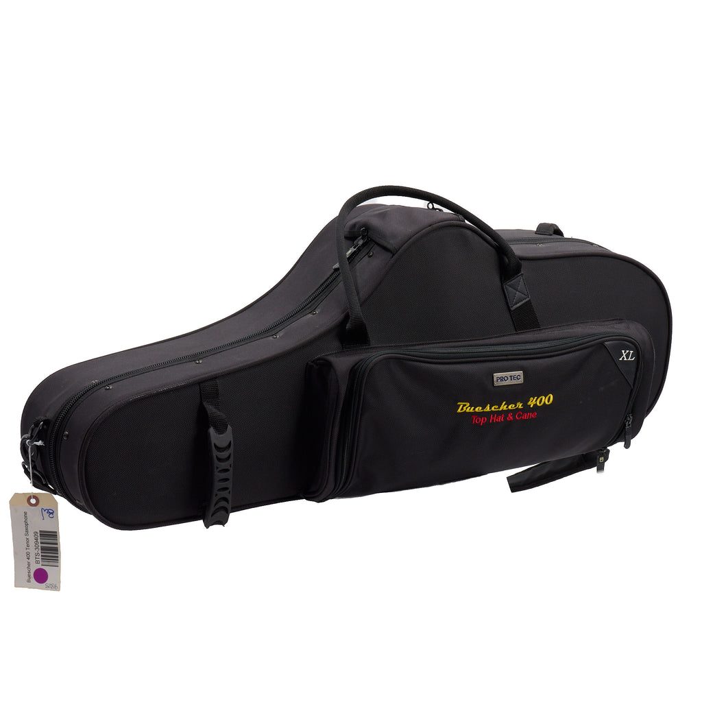 This is a GORGEOUS Buescher 400 Top Hat and Cane tenor saxophone. The Buescher 400 is THE rock and roll sax, with a giant tone quality that will drown out any Mark VI on the stage. It has the original snap-on resonators.