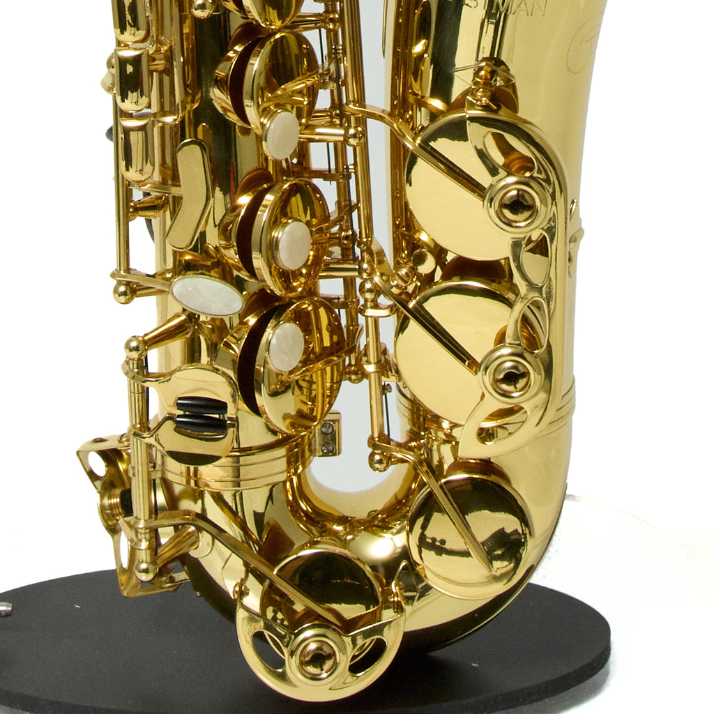 Based on the same scale as professional Eastman instruments, the intermediate model EAS451 alto saxophone is appropriate for the advancing student player. Features include left- and right-hand section adjustment screws, an adjustable thumb rest and an Eastman Protégé mouthpiece. A Légère Signature reed, Rovner Light ligature and cap and Deluxe case with storage pockets are included.
