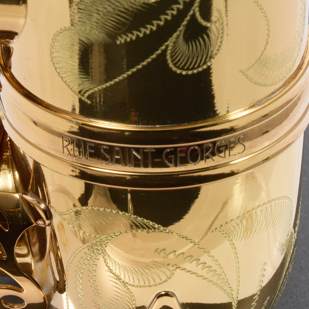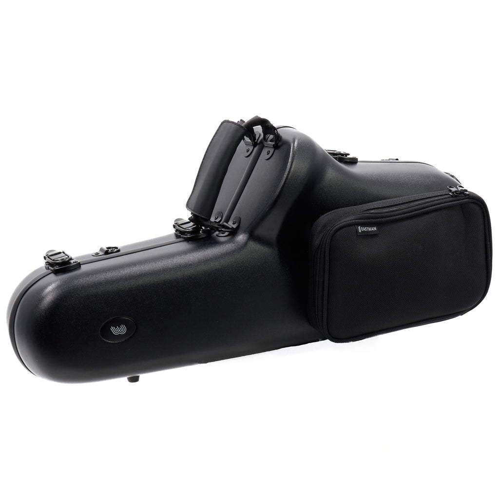 The Eastman EAS850 'Rue Saint-Georges' is a professional alto saxophone tailored for discerning musicians. It draws inspiration from classic French saxophones, offering a focused and centered sound that resonates in professional settings. The EAS850 is engineered with a DS mechanism and innovative keywork design, enhancing its playability and feel. This saxophone includes two necks, "R" and "S," giving players the flexibility to achieve varying tonal colors and dynamics.