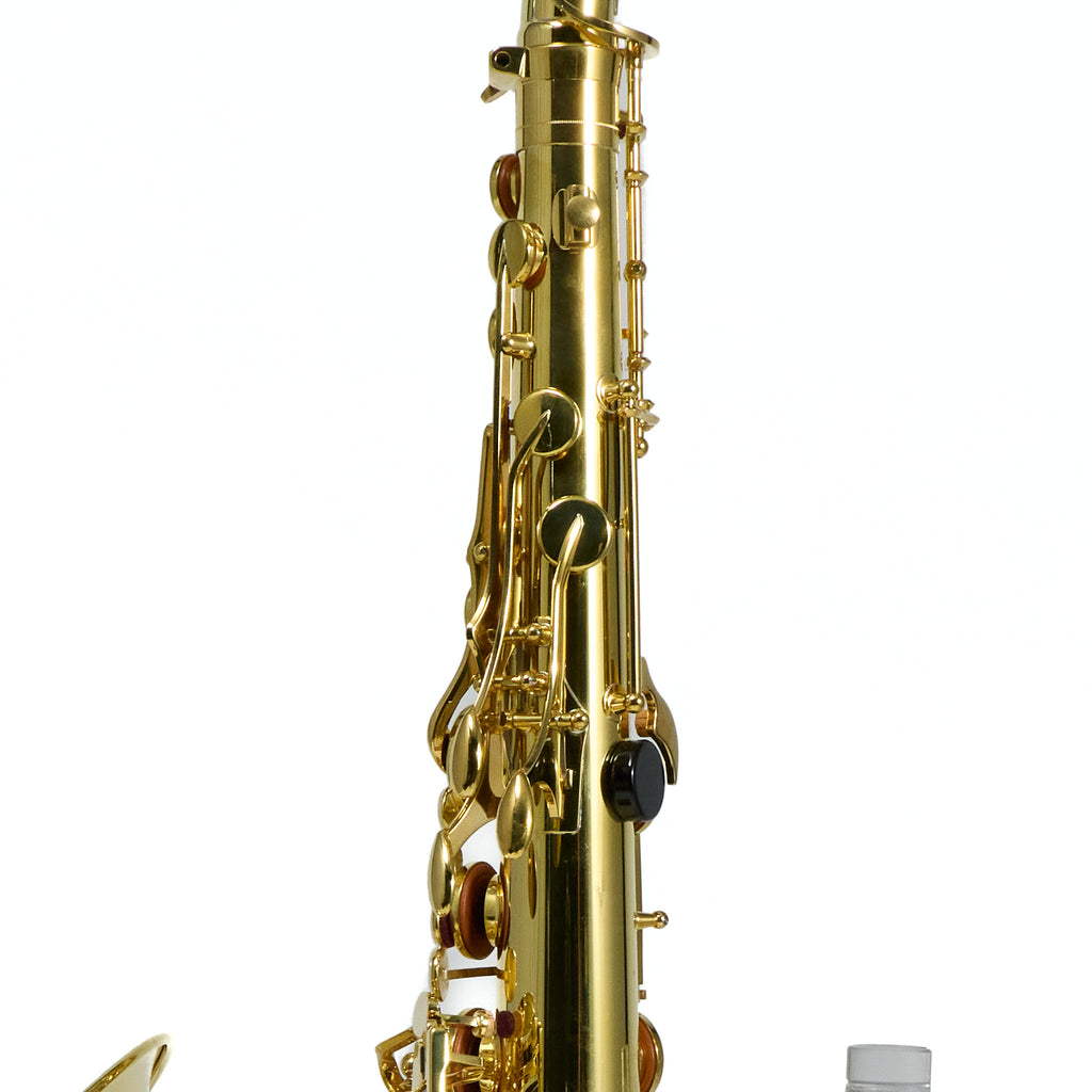 This saxophone is in excellent condition and is indistinguishable from new in every way - no dents, scratches, nicks, or surface marks EXCEPT that it has been out of the plastic for a while and the patina that unlacquered instruments are known for has started to develop. Pads are perfect. Comes complete with original case and all original manufacturer's accessories, including mouthpiece, cap, and ligature.