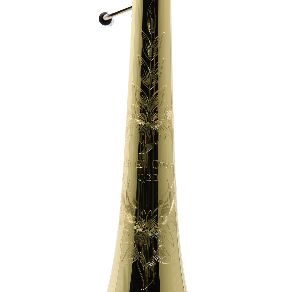 What distinguishes the Q30YR within its category is the combination of the QTY hand-hammered QI-taper yellow brass bell and the .547 QW47 slide with a nickel-silver crook, which together support a singing tone, strong projection, and a crisp front to the note. The three interchangeable leadpipes allow players to fine-tune response and resistance to match their setup and repertoire.