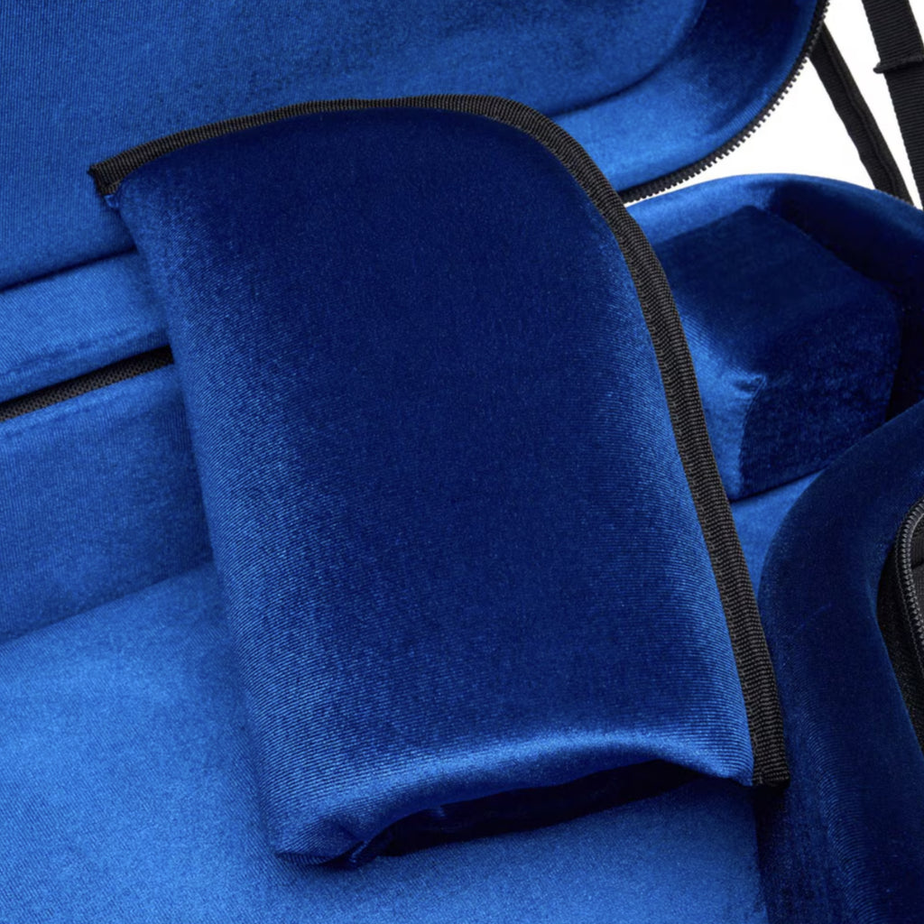 The PB324 Baritone Saxophone Case is designed to fit most modern baritone saxophones while offering exceptional protection in a compact form. Built with a lightweight, impact-resistant wood frame and covered in weather-resistant 1680 ballistic nylon, this case delivers reliable durability for everyday use. The plush blue velvet interior cradles your instrument in a soft, protective lining, while the contoured design keeps the overall profile impressively small.