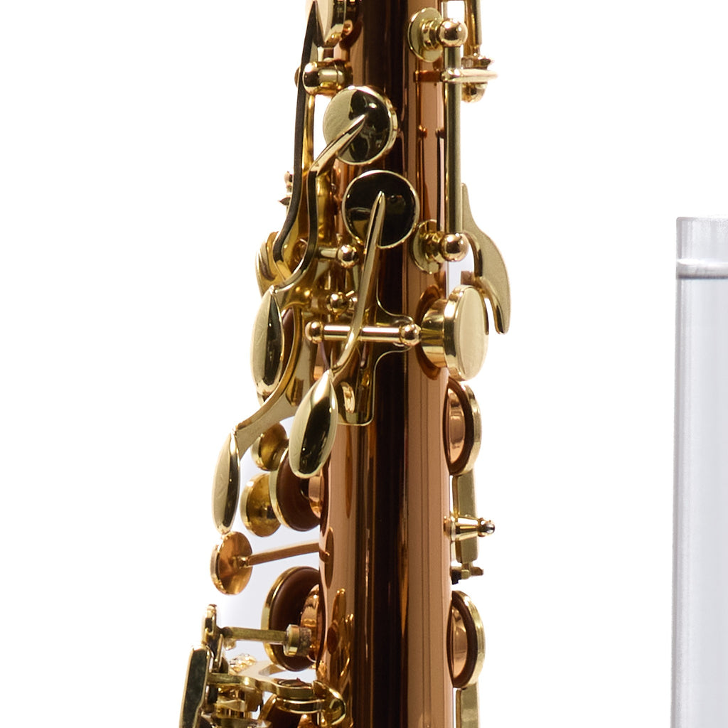 A Selmer SAS511C is an intermediate Eb alto saxophone built to deliver professional-style playability and tonal complexity at a more accessible price point. Designed after Selmer Paris professional instruments, it combines a hand-adjusted neck, Pisoni Pro pads, and a one-piece hand-hammered bell to support a centered sound with rich overtones. The copper body and bow with clear lacquer add a distinctive look while maintaining a focused, projecting voice. This saxophone has been set up and is ready to play.
