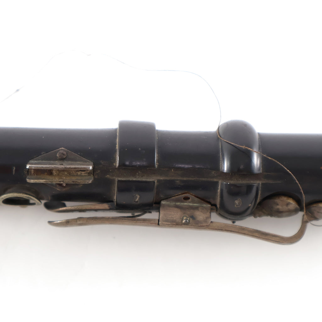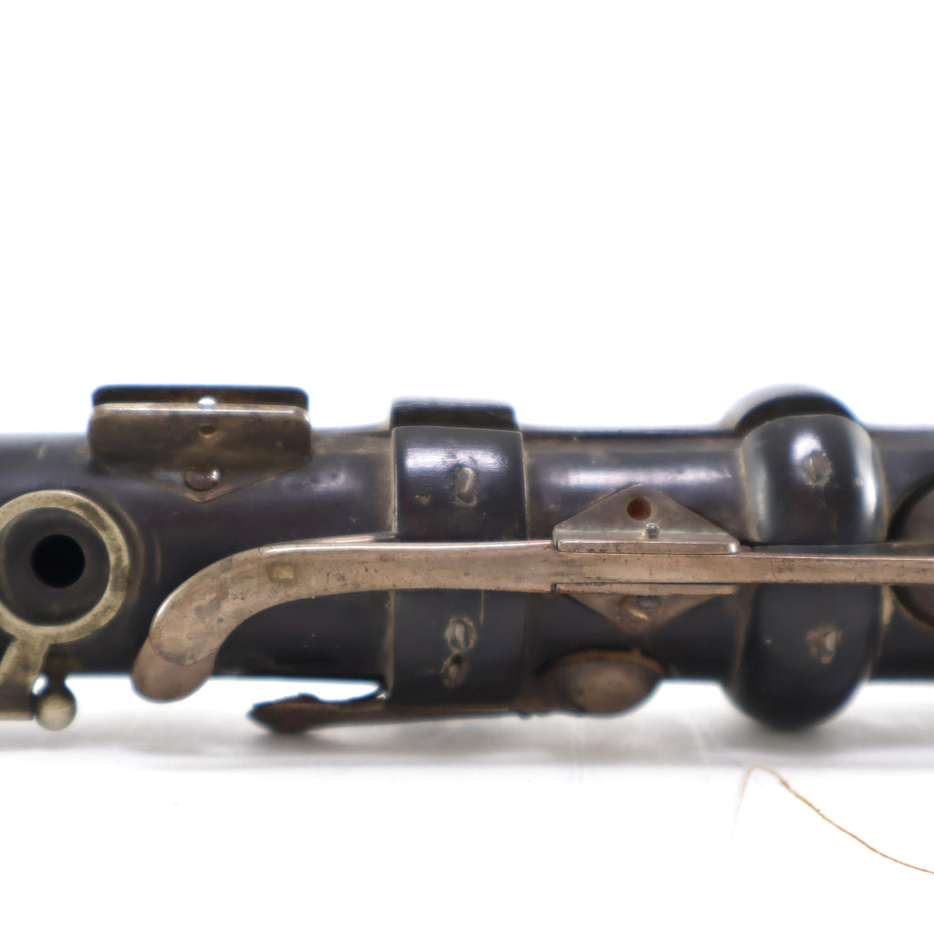 As this instrument is historically interesting, we have chosen to not do restoration work on it and leave that to the eventual owner. Instrument will need pad and keywork to be playable.