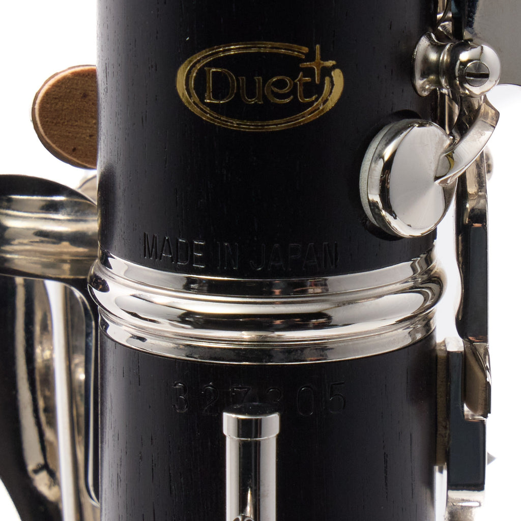 Duet+ refers to the upper joint design that uses an injection-molded inner bore. This is intended to improve stability and consistency while keeping the overall playing experience of a wood clarinet.