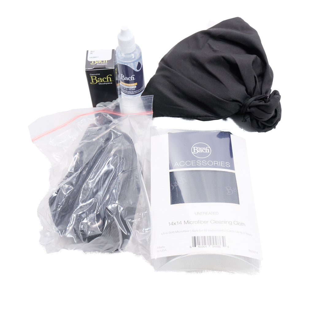 - Accessories: Valve oil, polish cloth, and Bach 3C mouthpiece