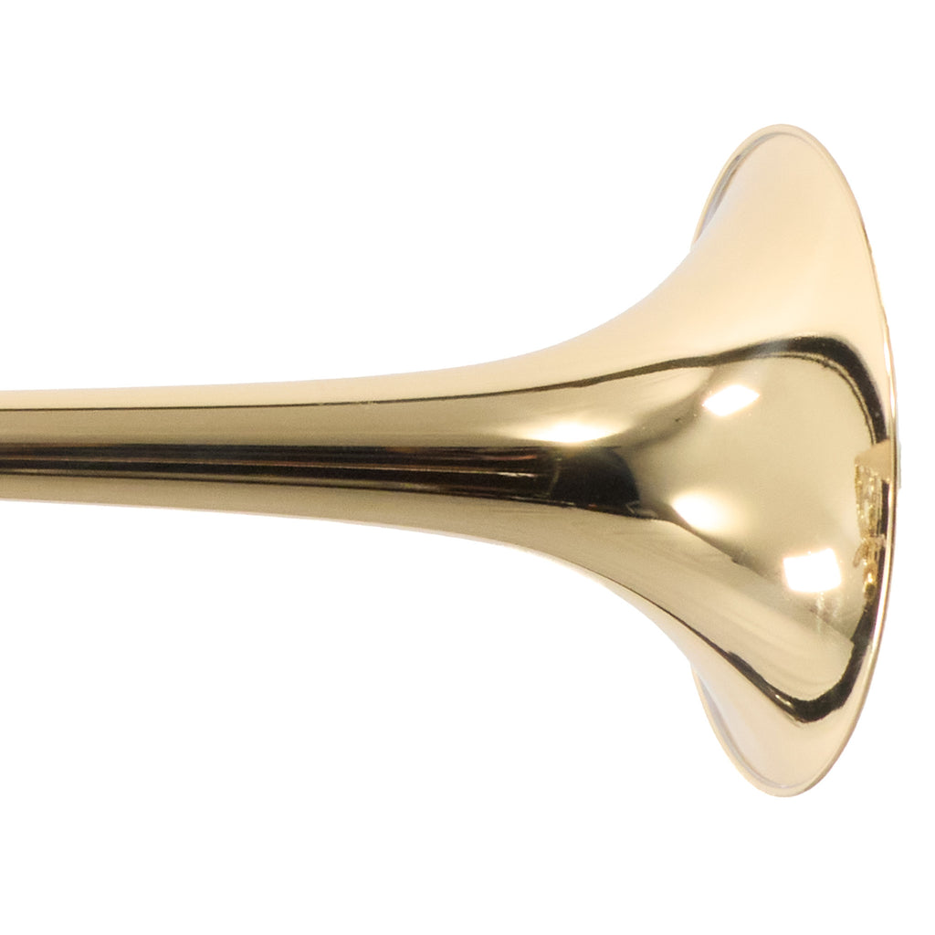 The Bach 42BG trombone features an 8-1/2 inch one-piece hand-hammered gold brass bell that has defined the symphonic sound for generations. The .547 large bore, combined with the traditional rotary valve and open wrap F attachment, offers a warm sound, great projection, and an open feel. The chrome plated nickel silver inner handslide tubes provide the ideal surface for smooth and quick handslide action. The clear lacquer finish adds a subtle warmth to the sound overall. The Bach Stradivarius 42BG professional trombone is ideal for both symphonic and solo performance