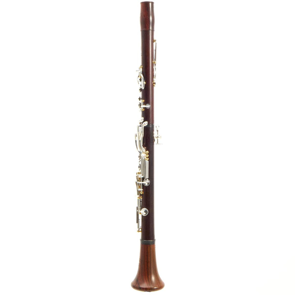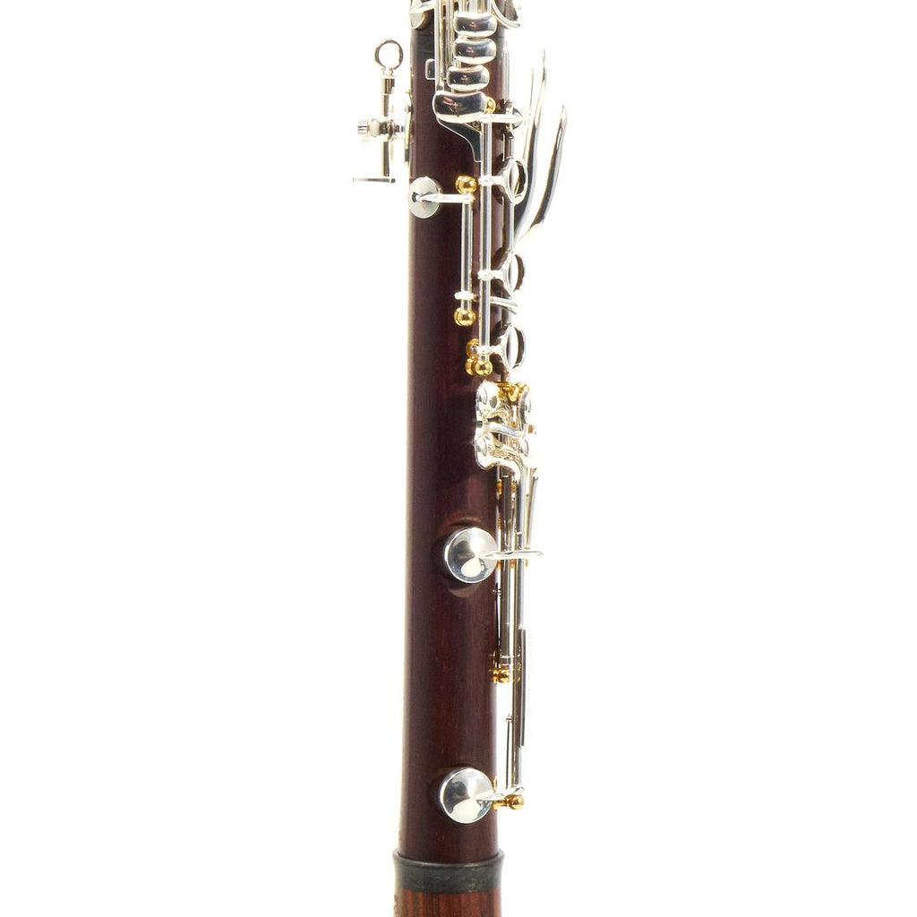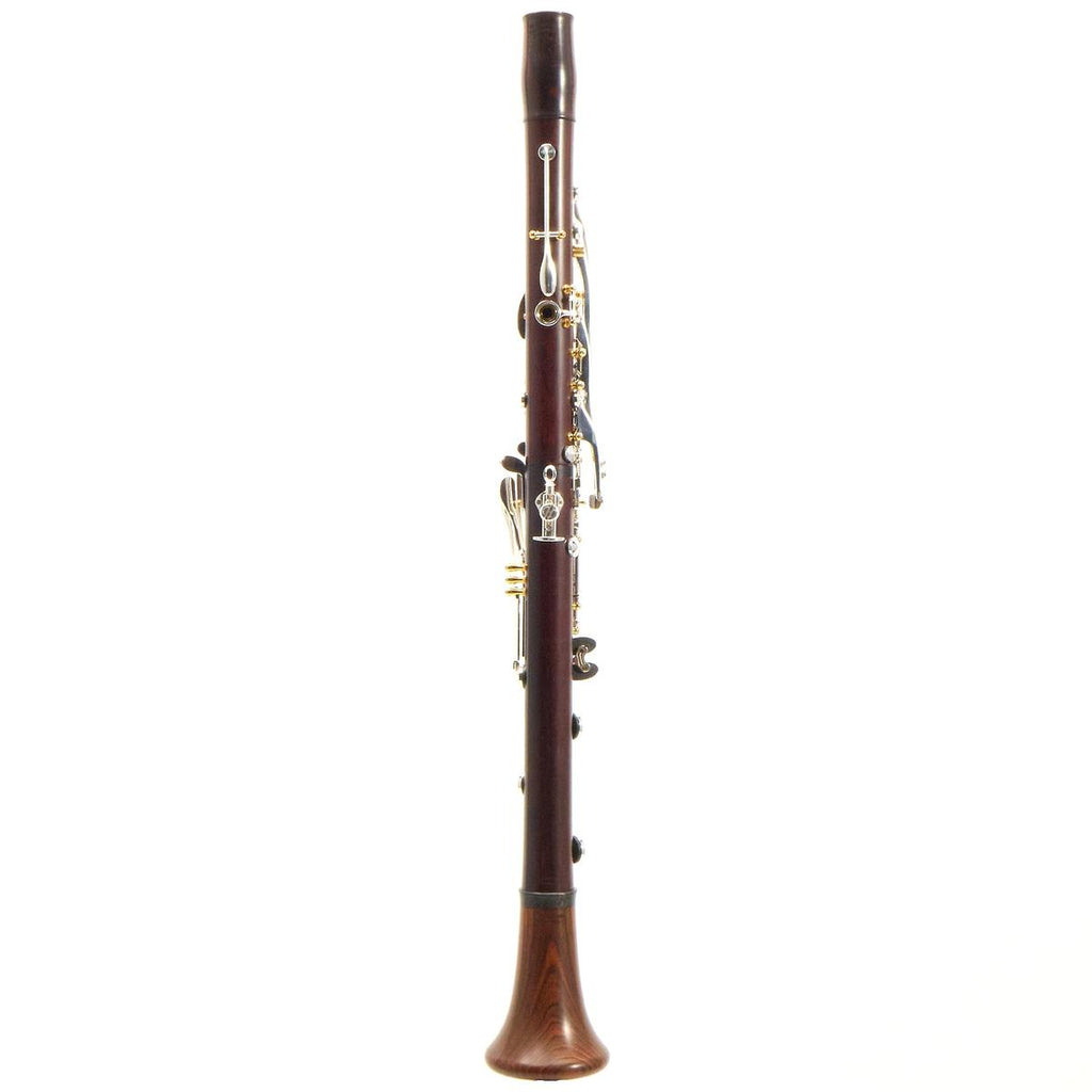 The Q Series Clarinet offers those who prefer a more traditional French-style instrument the chance to experience the world of Backun. Backun combines modern manufacturing techniques and treatments, including a carbon fiber middle joint ring, with naturally unstained Cocobolo wood and brilliant silver-plated keywork to produce an instrument with truly familiar feel and playability. Inline trill keys move the tone holes out of the waterline while the Backun proprietary manufacturing process ensures a precision bore and perfectly sculpted tone holes that produce impeccable intonation and response. With upgraded custom black leather pads and silencing materials that provide unrivaled comfort and response, Q Series Clarinets are now paired with two Backun Lumière Barrels and a Lumière Bell, adding further refinement and playability throughout all registers. An affordable masterpiece, the Q Series is the classic choice. This instrument features the alternate Eb key for easier execution of difficult passages.