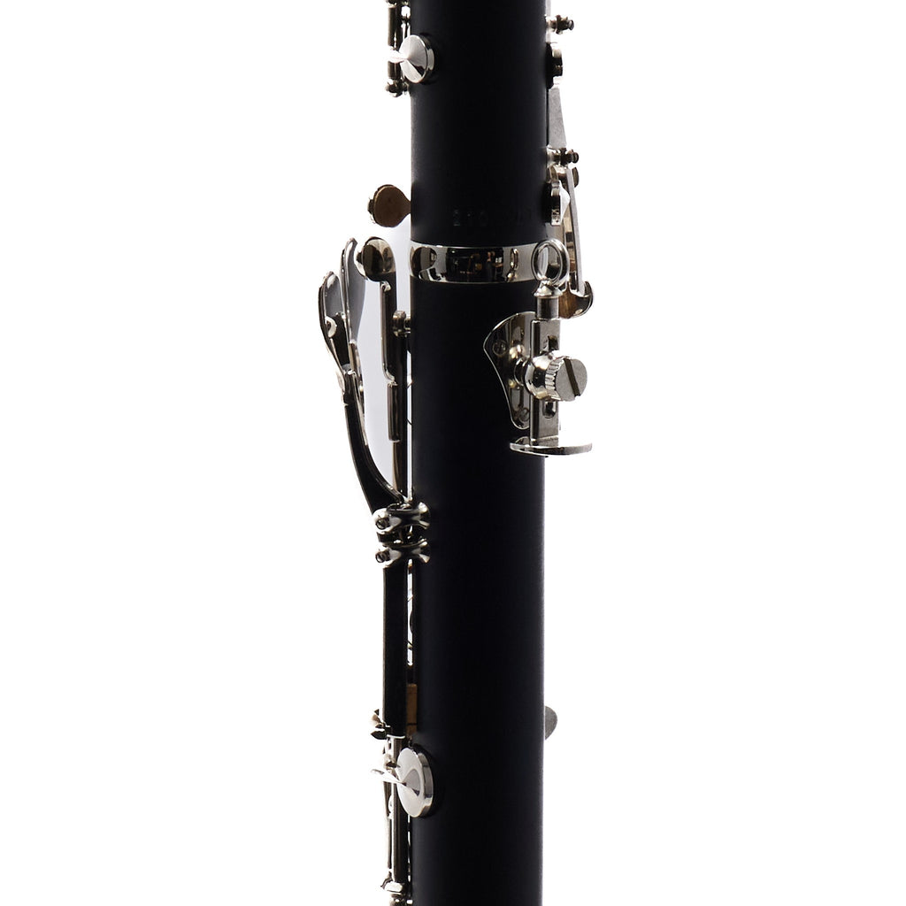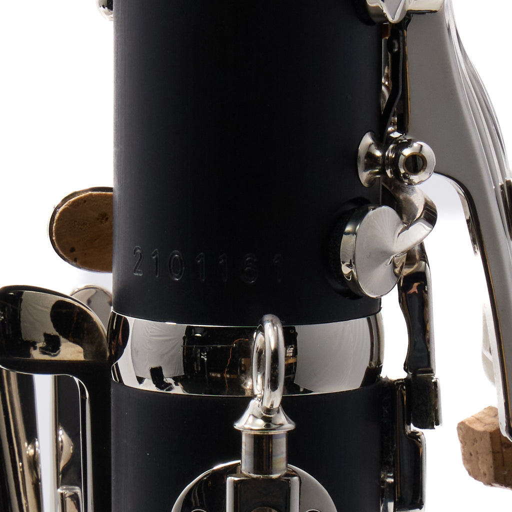 This clarinet has seen extremely light use as a demo or display instrument. It was purchased directly from the manufacturer and has been professionally serviced, set up, and play-tested in our shop to confirm proper seal, key regulation, and overall function.