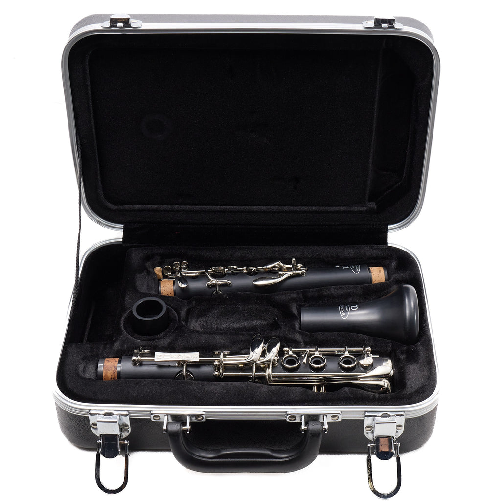 This clarinet has seen extremely light use as a demo or display instrument. It was purchased directly from the manufacturer and has been professionally serviced, set up, and play-tested in our shop to confirm proper seal, key regulation, and overall function.