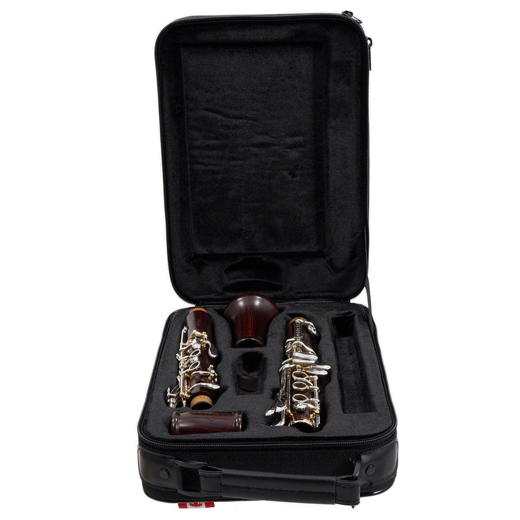 The Protégé is your foot in the door to college or the perfect teaching companion. Featuring unstained, naturally-aged cocobolo wood, from the exact same wood used for Backun's professional and custom clarinets. The Protégé features a professional finish, undercut tone holes, a New Traditional Barrel and Backun Bell. Custom black leather pads, an adjustable thumb rest with neck strap ring, and a durable backpack case rounds out an impressive list of features at an even more impressive price.