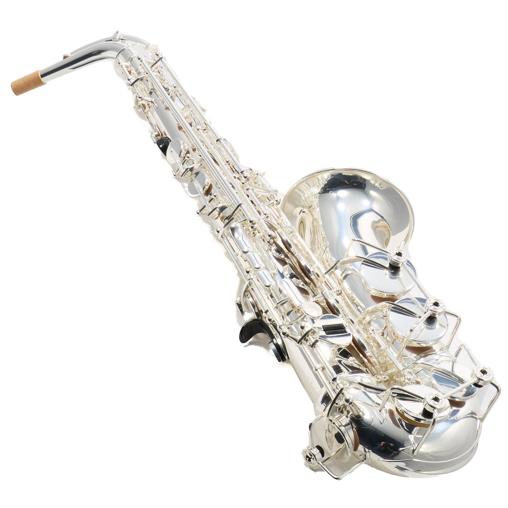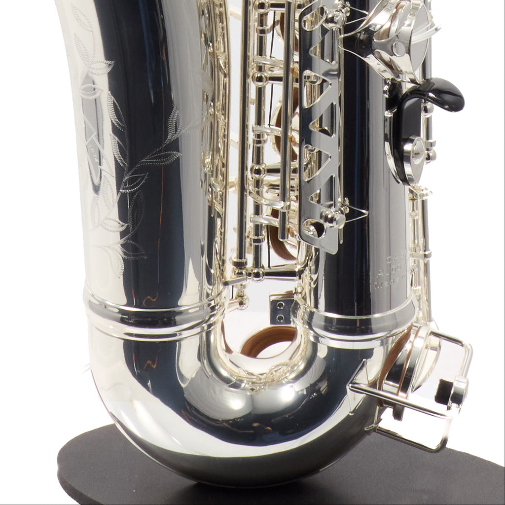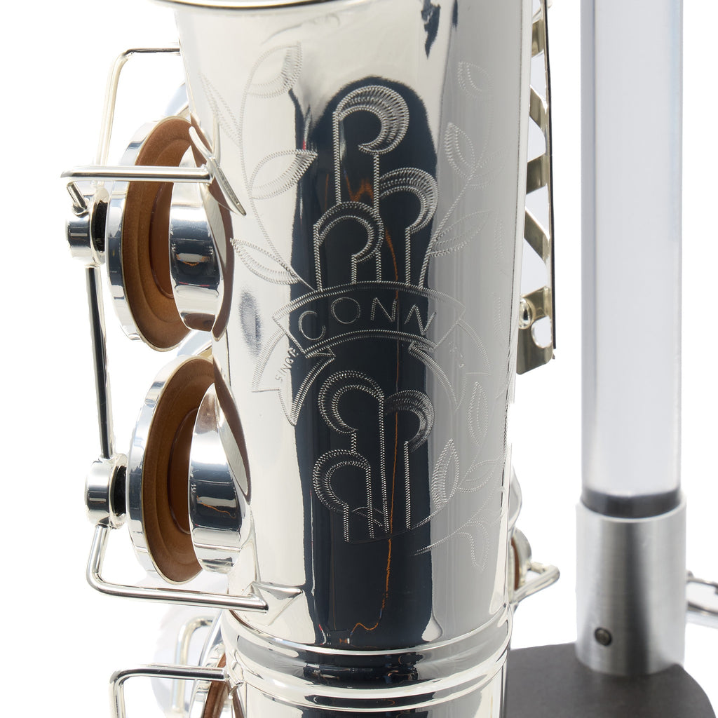 The C.G. Conn CAS411S Intermediate Alto Saxophone offers an ideal blend of professional craftsmanship and superior playability for the advancing musician. This stunning instrument is equivalent to the Selmer SAS411 but features the unique Conn bell stamp specifically designed for international markets. Crafted from hand-engraved silver plated brass, the saxophone delivers a bright and resonant sound that captivates both player and audience.
