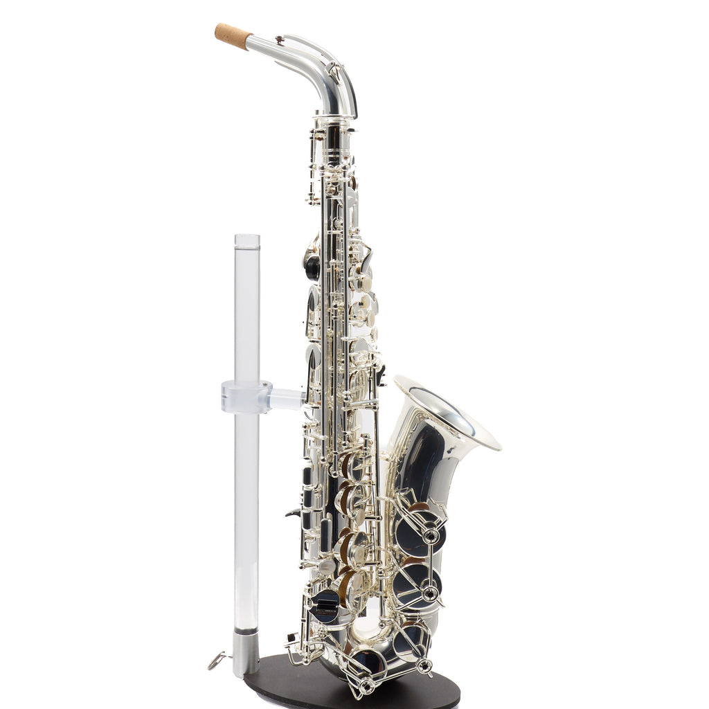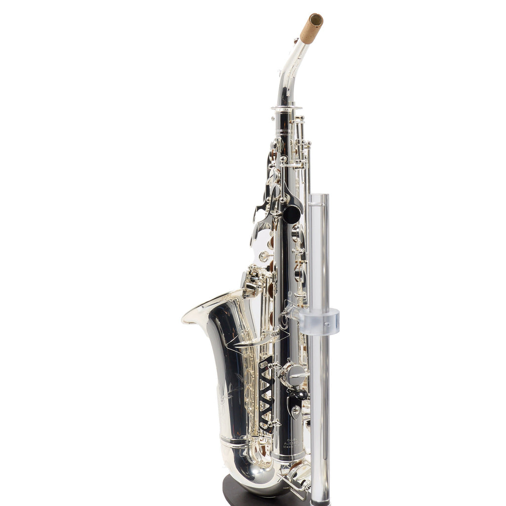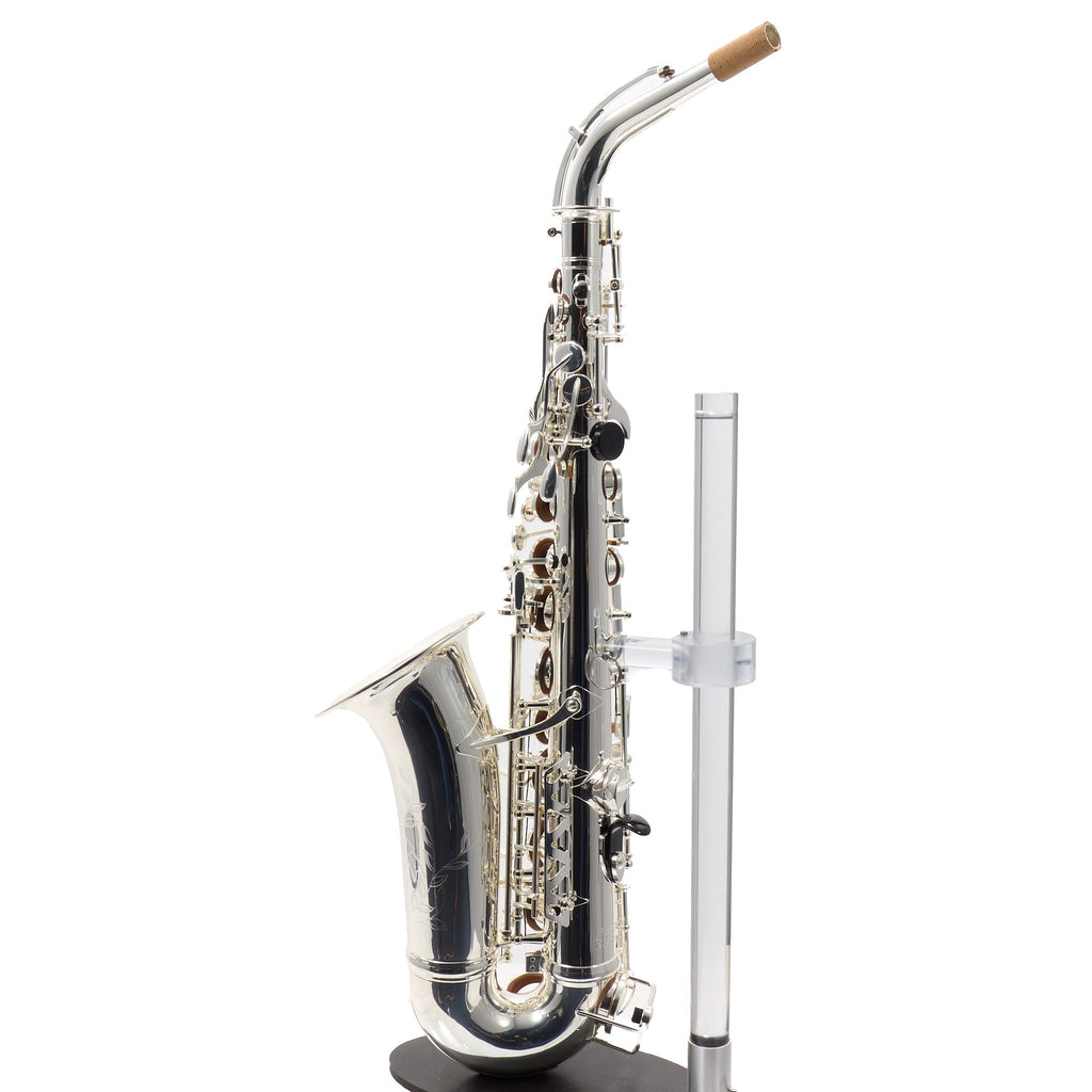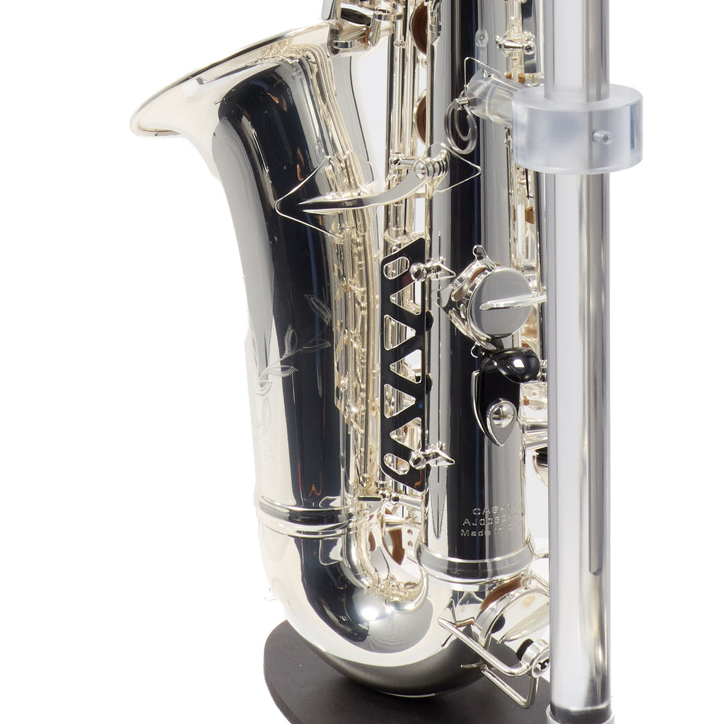 The C.G. Conn CAS411S Intermediate Alto Saxophone offers an ideal blend of professional craftsmanship and superior playability for the advancing musician. This stunning instrument is equivalent to the Selmer SAS411 but features the unique Conn bell stamp specifically designed for international markets. Crafted from hand-engraved silver plated brass, the saxophone delivers a bright and resonant sound that captivates both player and audience.