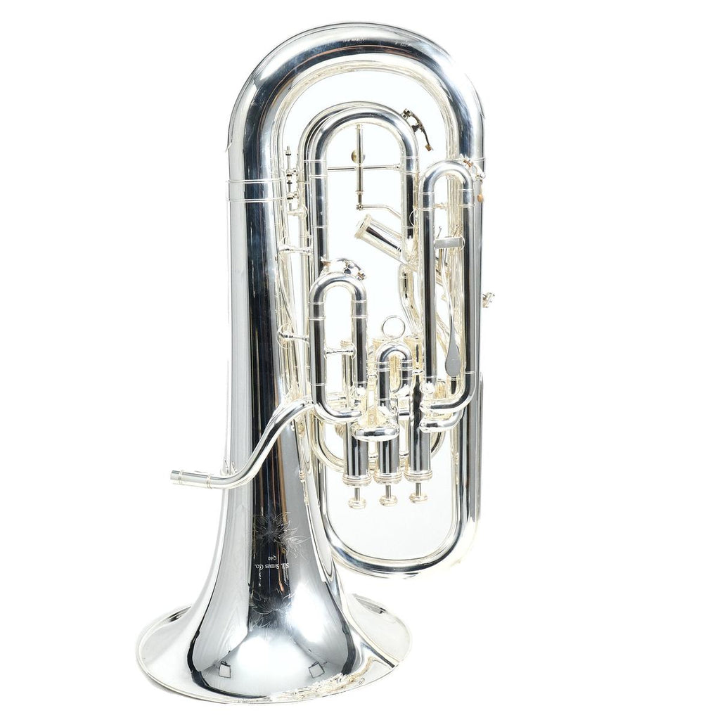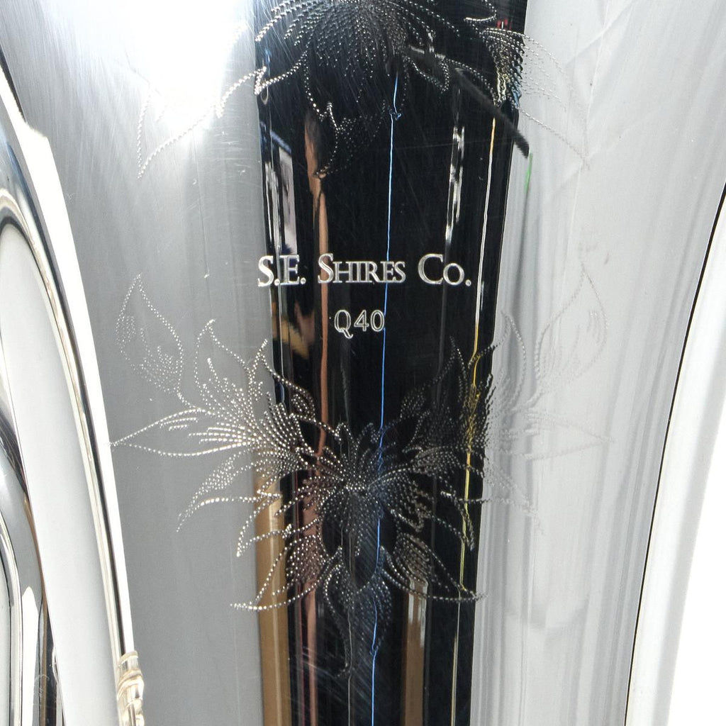 The S.E. Shires Model Q40TS Q-Series Compensating Euphonium is a Bb compensating euphonium designed to provide a balanced feel, ease of playing, and clear projection for ensemble and solo work. This instrument features a hand-hammered, two-piece upright bell, a main tuning slide trigger, and a silver-plate finish, combining modern performance features with a traditional compensating euphonium layout.