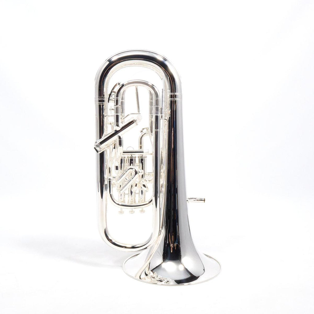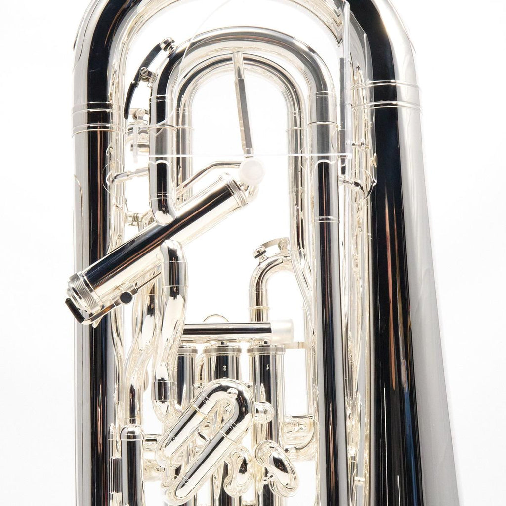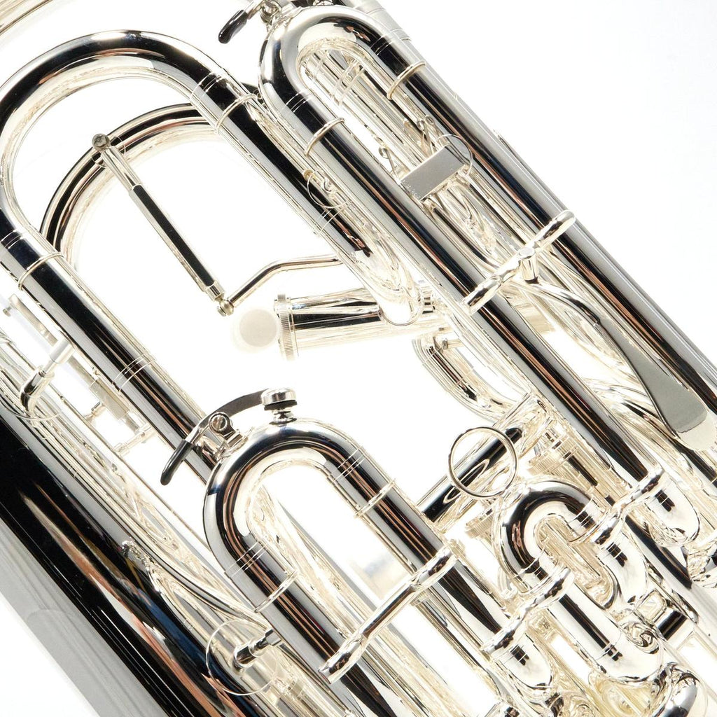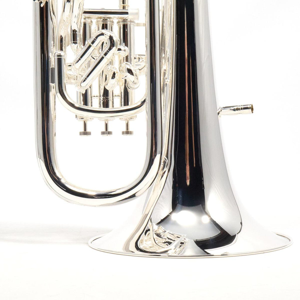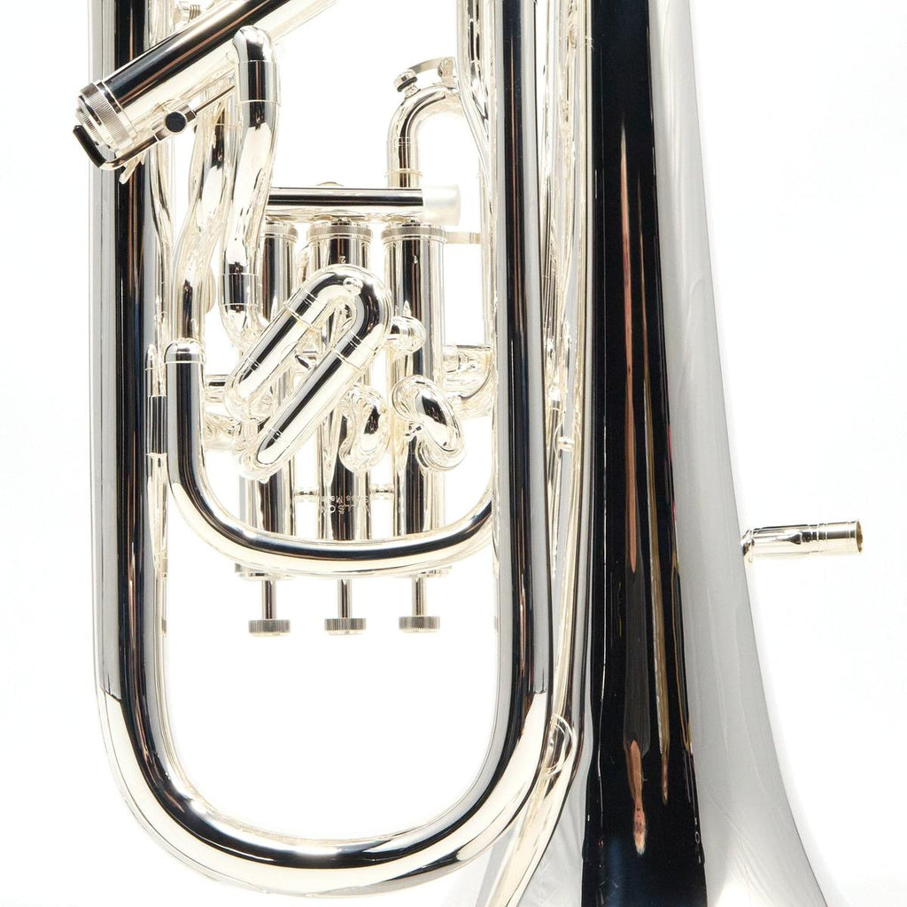 The compensating system supports accurate low-register intonation, while the main tuning slide trigger provides on-the-fly correction for demanding ensemble and solo literature. The 12 inch one-piece seamless yellow brass bell and silver plate finish align with the projection, articulation feedback, and durability expected in professional brass band, wind ensemble, orchestral euphonium parts, and solo performance settings.