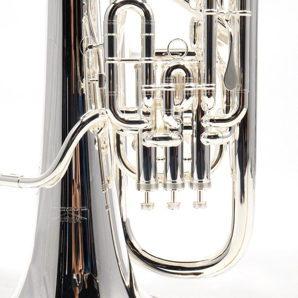 The Willson 2950TA is a Bb compensating euphonium with a main tuning slide trigger, built in Switzerland to professional performance standards and finished in silver plate. This model is designed for soloistic and ensemble playing where a broad, easily produced sound, smooth overtone structure, and secure intonation control are priorities.